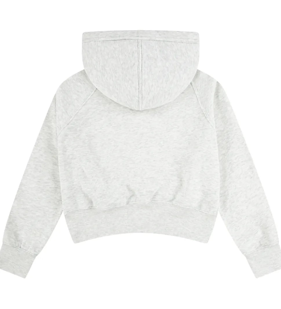 Fin hættetrøje fra Abercrombie & Fitch i meleret lysegråt sweat. Hættetrøjen har en fast hætte, og den har brede ribkanter. Ved ærmerne er der et lille hul til tommelfingeren. Hættetrøjen har blødt, børstet bomuld på indersiden.
