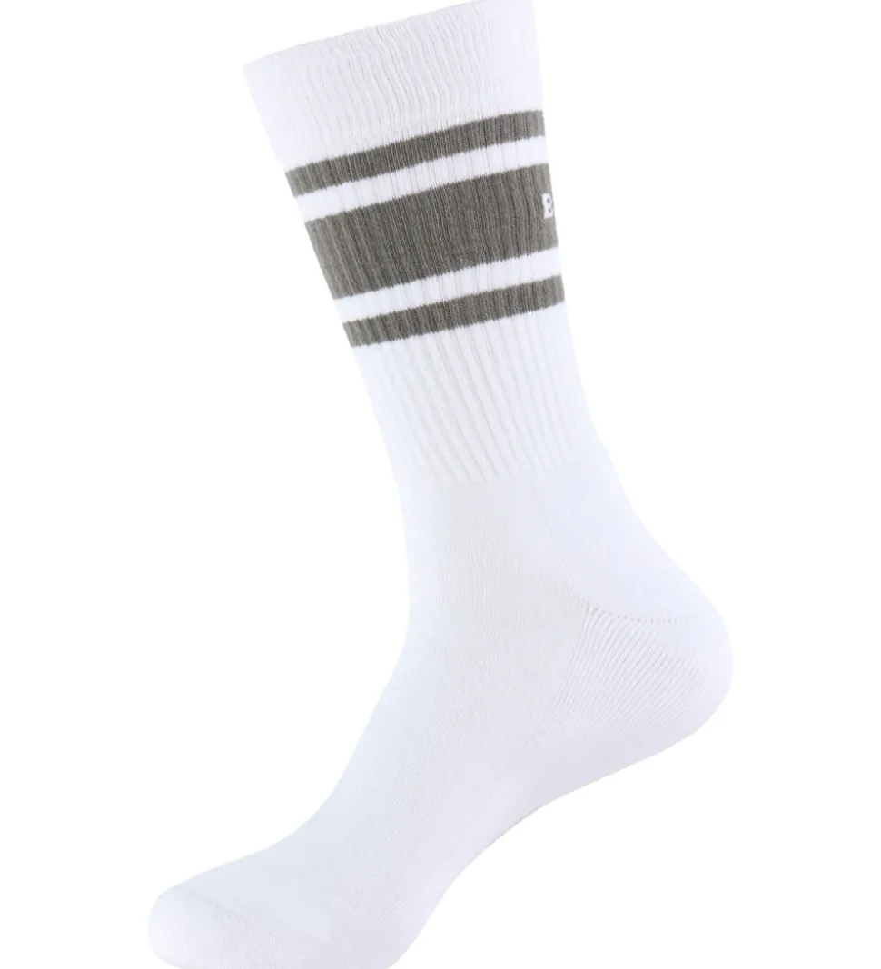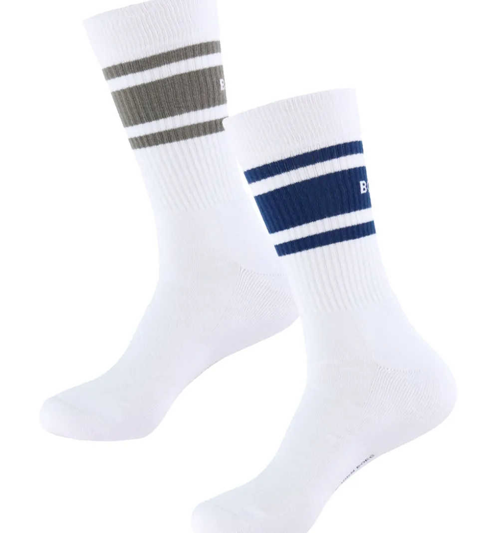 Stilfulde Björn Borg strømper solgt i en 2-pak i hvid med vandrette striber i henholdsvis grøn og mørkeblå. Strømperne har en ribkant øverst, der sikrer en god pasform. Björn Borg strømperne udmærker sig ved deres enkle og moderne design.