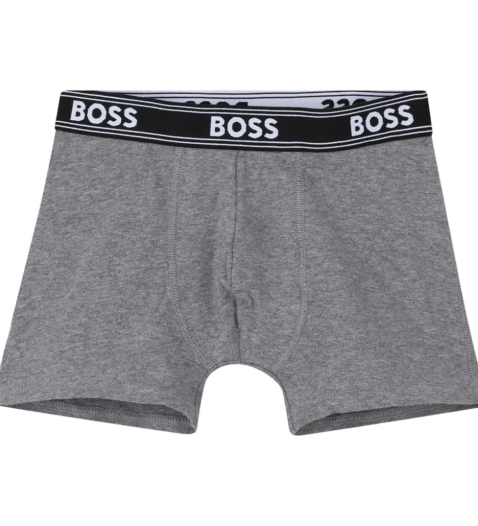 Stilfulde BOSS boxershorts i en pakke med fem par. Disse BOSS boxershorts kommer i farverne sort og gråmeleret. Boxershortsene har en elastikkant i livet med det karakteristiske BOSS logo. Designet sikrer en behagelig og sikker pasform til daglig brug.