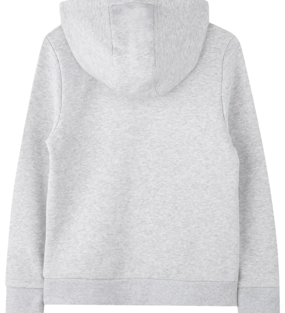Elegant BOSS hættetrøje i gråmeleret sweat med et markant, sort logo printet på fronten. Hættetrøjen har en hætte med bomuldsfor, og fortil sidder der en praktisk kængurulomme. BOSS hættetrøjen har ribkanter for et klassisk look, og på indersiden er der blødt, børstet bomuld.