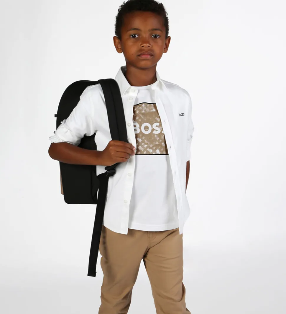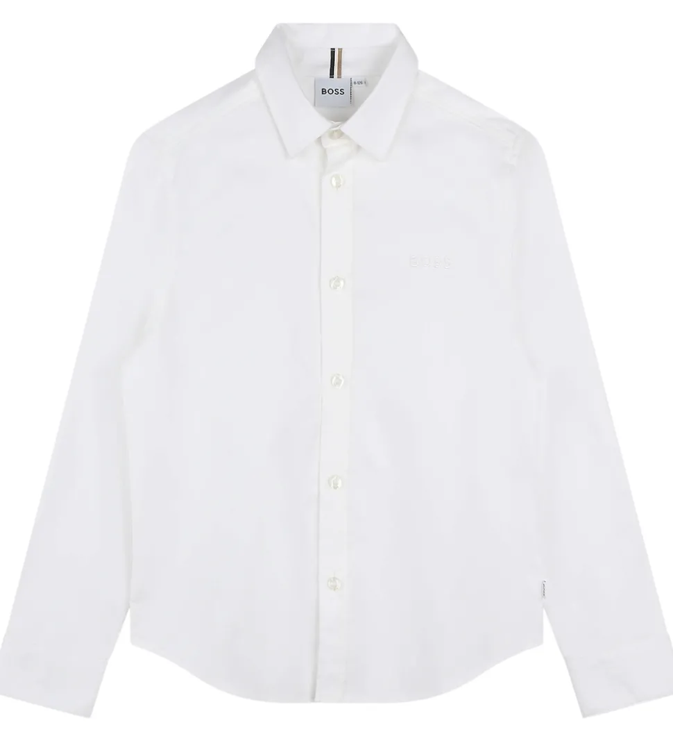 Stilren BOSS skjorte i en klassisk hvid farve. Skjorten har lange ærmer og en tidløs krave. Knaplukningen foran understreger det enkle design, og diskret broderet logo på brystet fremhæver brandet BOSS.
