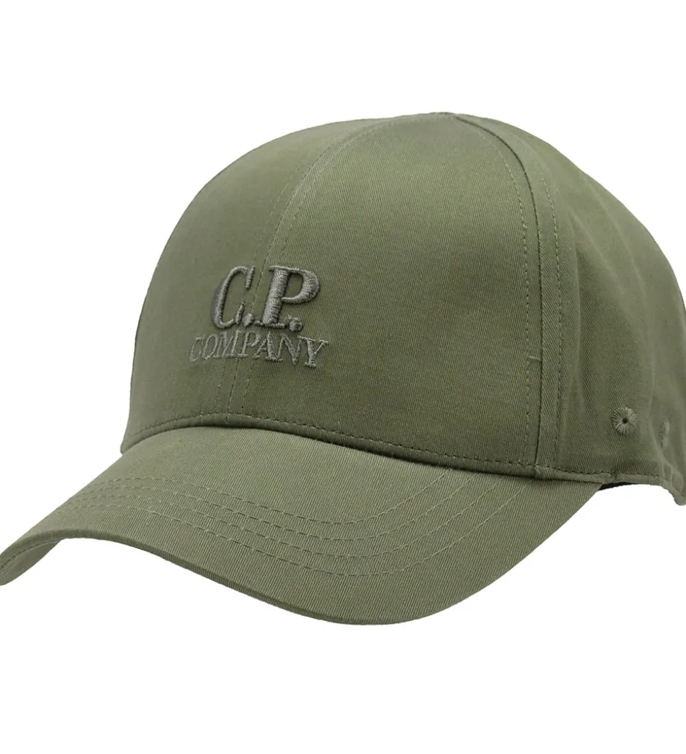 Smart C.P. Company kasket i ensfarvet armygrøn, og fortil står der “C. P. Company” med en kraftig brodering.