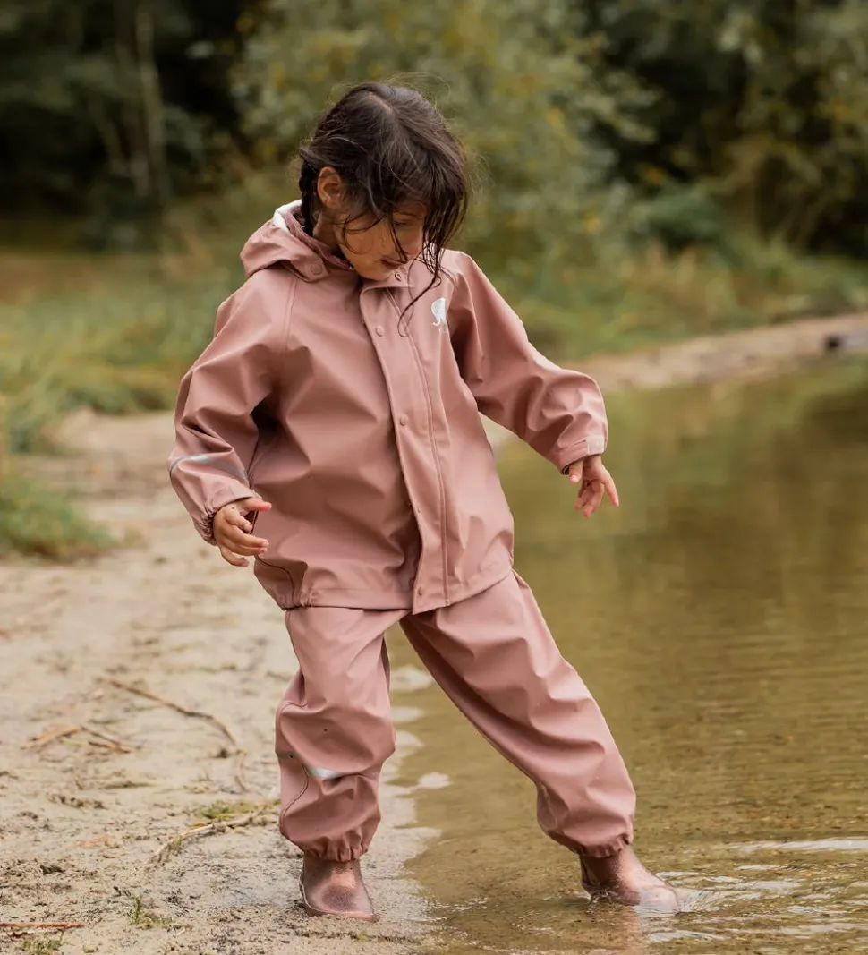 Fint CeLaVi regntøj i støvet rosa PU med seler.