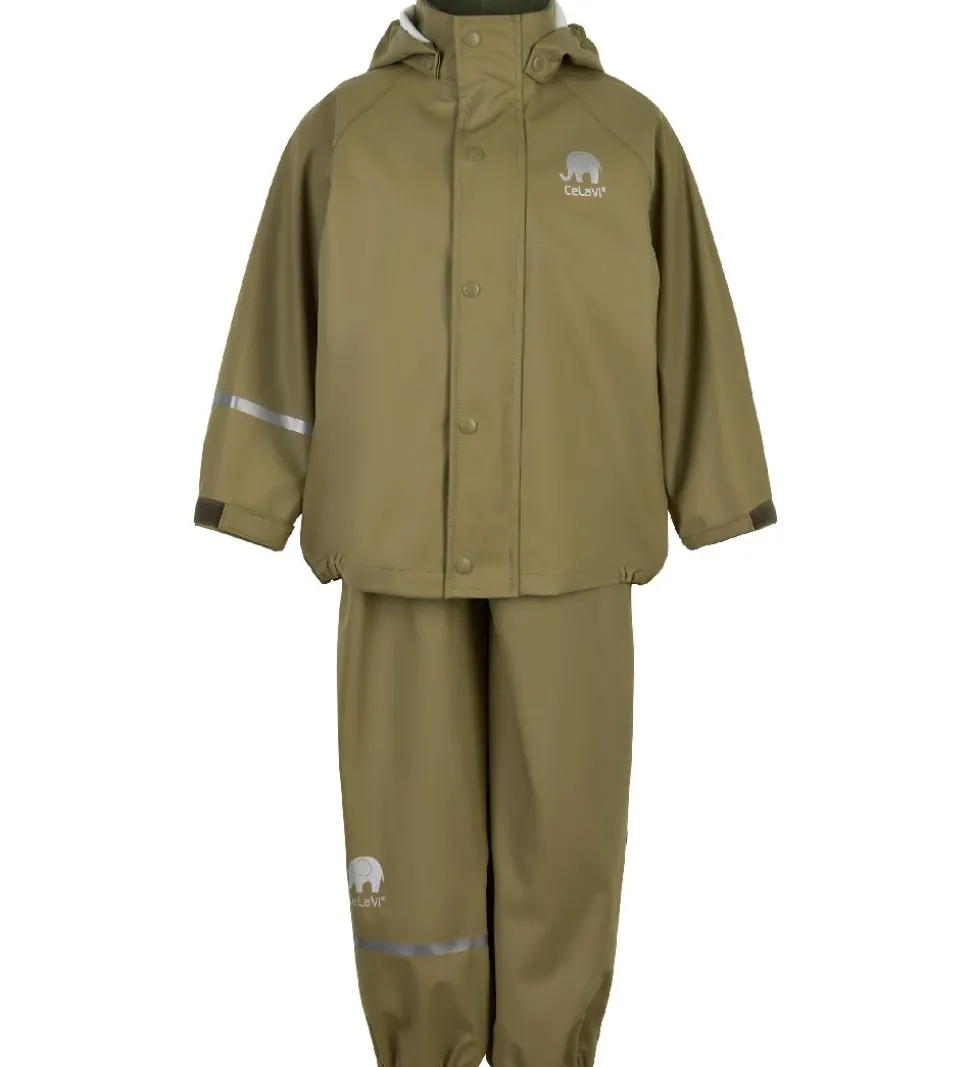 Smart CeLaVi regntøj i armygrønt PU med seler.