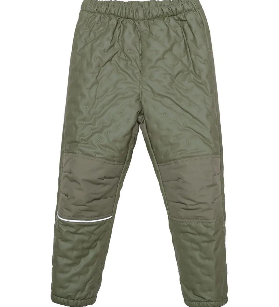 Termobukserne har elastikkanter i liv- og benåbningerne, og der er praktiske forstærkninger på knæene og på numsen.