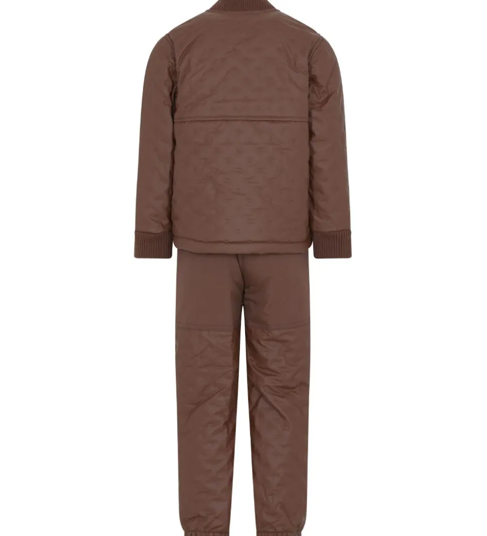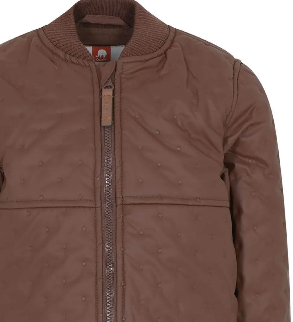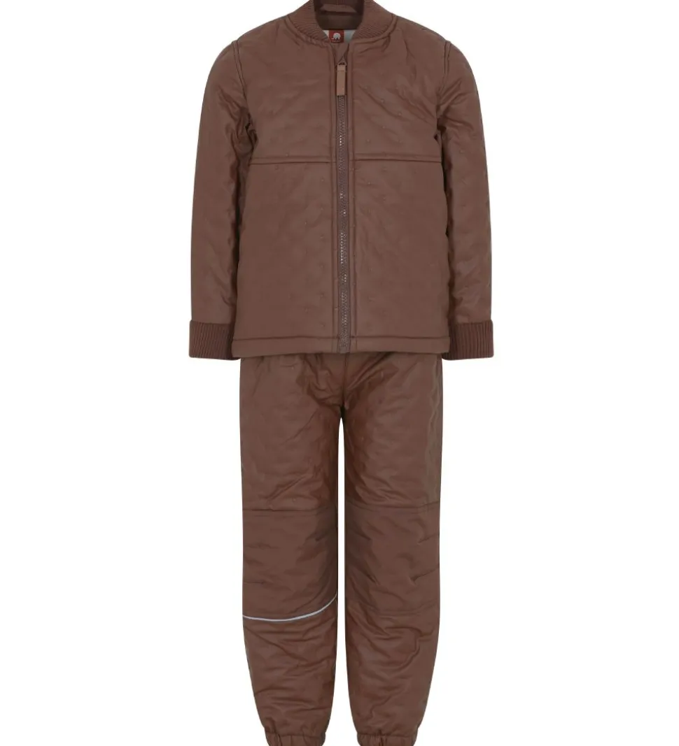 Skønt CeLaVi termotøj i brun. Sættet består af en termojakke og et par termobukser med en praktisk PU-coating og fleeceforing.