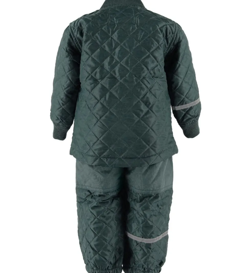 Smart CeLaVi termotøj bestående af en jakke og et par bukser i mørkegrøn med et flot quiltet design.