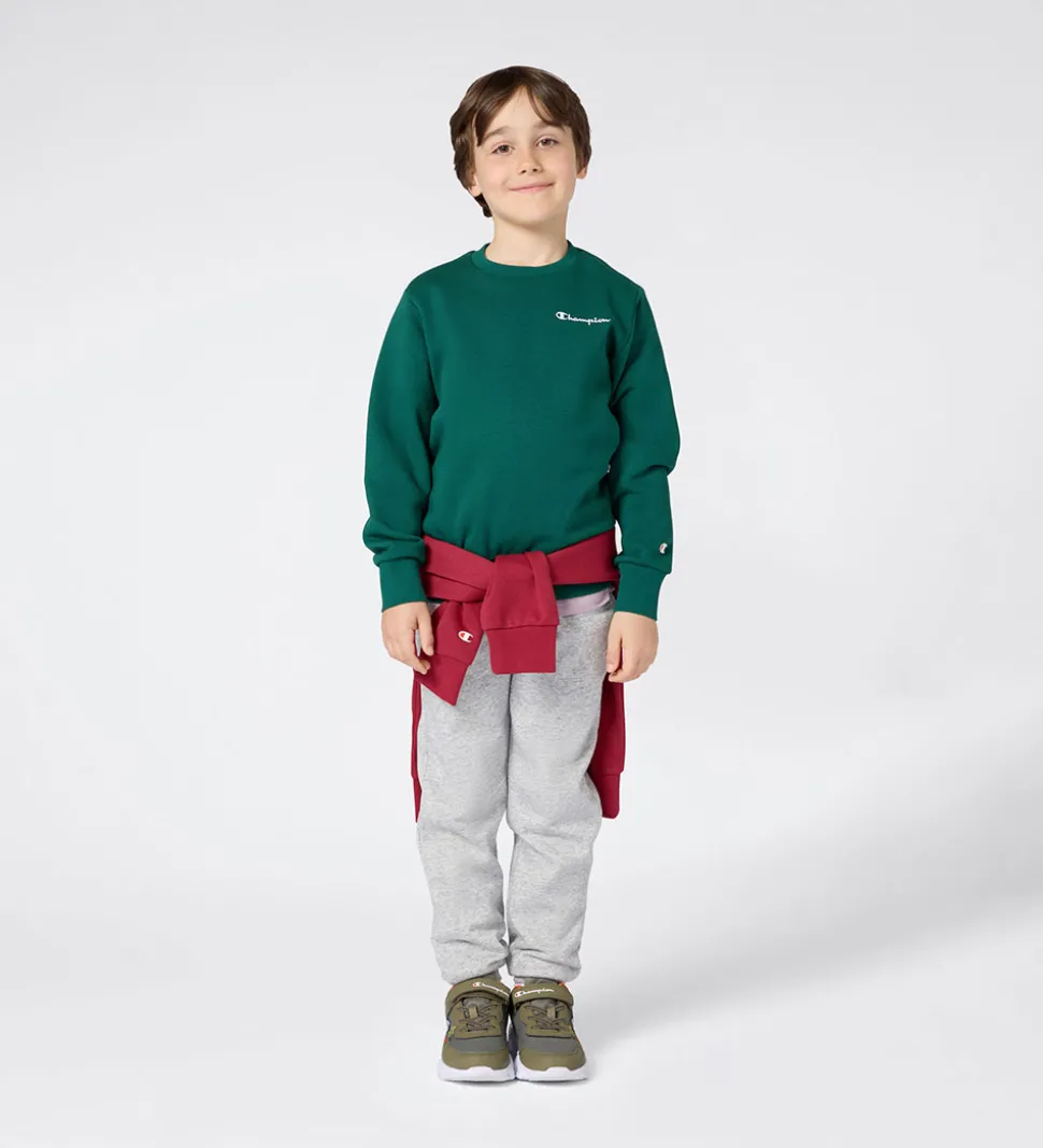 Stilfuld Champion sweatshirt i mørkegrøn med det klassiske Champion-logo broderet i hvid på venstre bryst. Champion sweatshirten har lange ærmer og ribkanter ved alle åbninger. Indvendigt er der blødt, børstet bomuld.