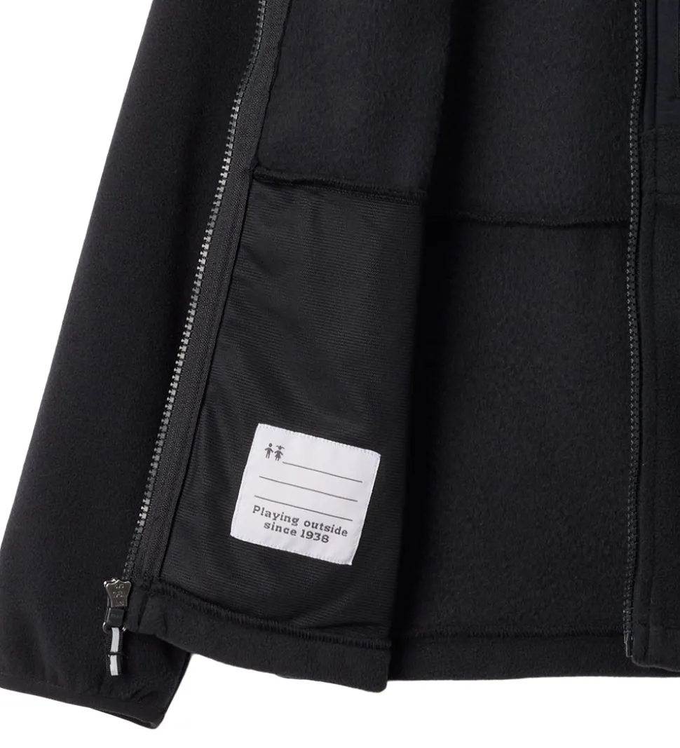 Flot Columbia fleecejakke i ensfarvet sort med et logo på venstre ærme.