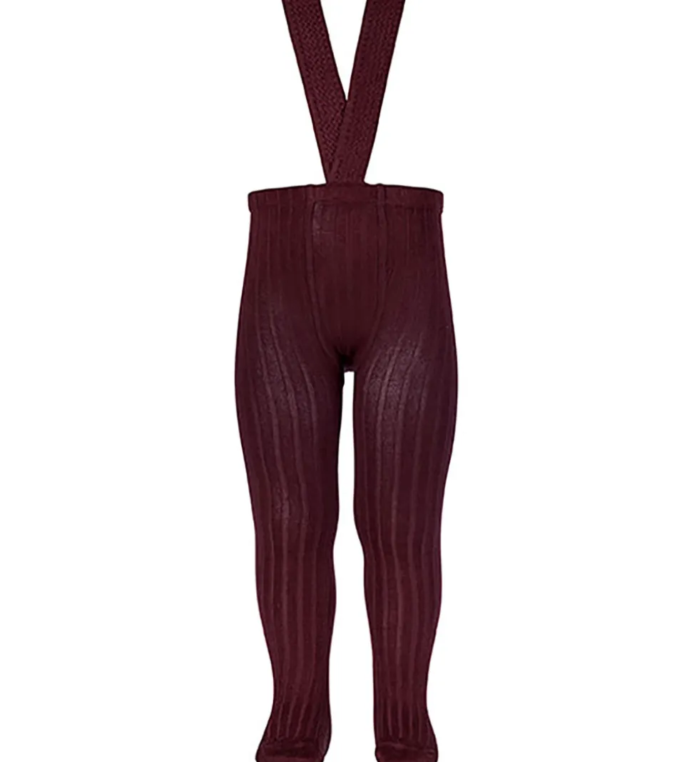 Elegante Condor strømpebukser i ensfarvet bordeauxrød med en flot ribstruktur.