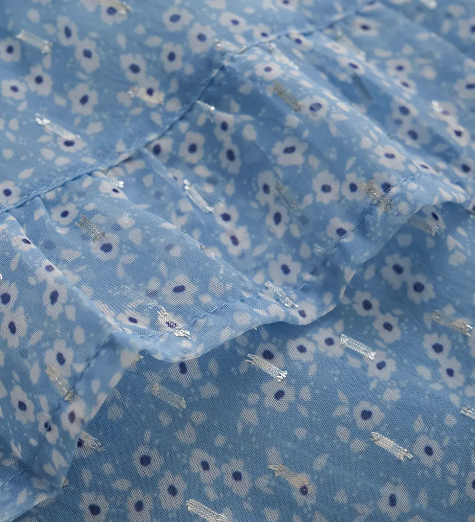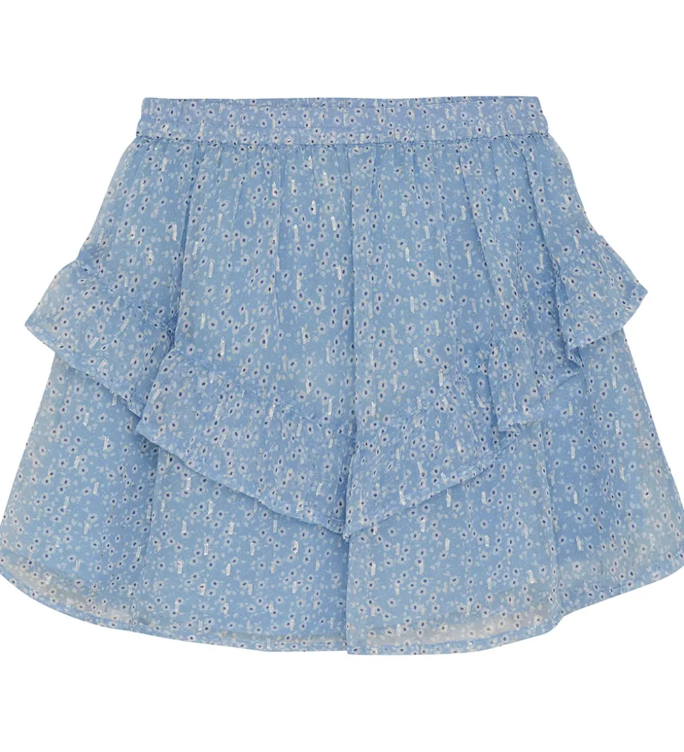 Lækker Creamie nederdel i en lys blå farve med et fint alloverblomsterprint og sølvglimmer detaljer.