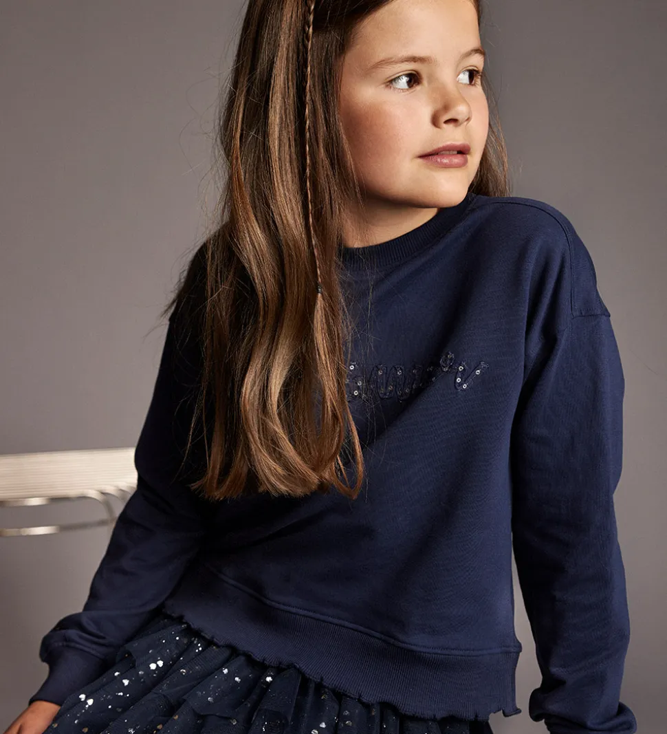 Elegant Creamie nederdel i en mørkeblå nuance med små, glitrende hjerter. Creamie nederdelen har en let og luftig skørtstruktur med elastisk kant i livet, hvilket giver en god pasform.