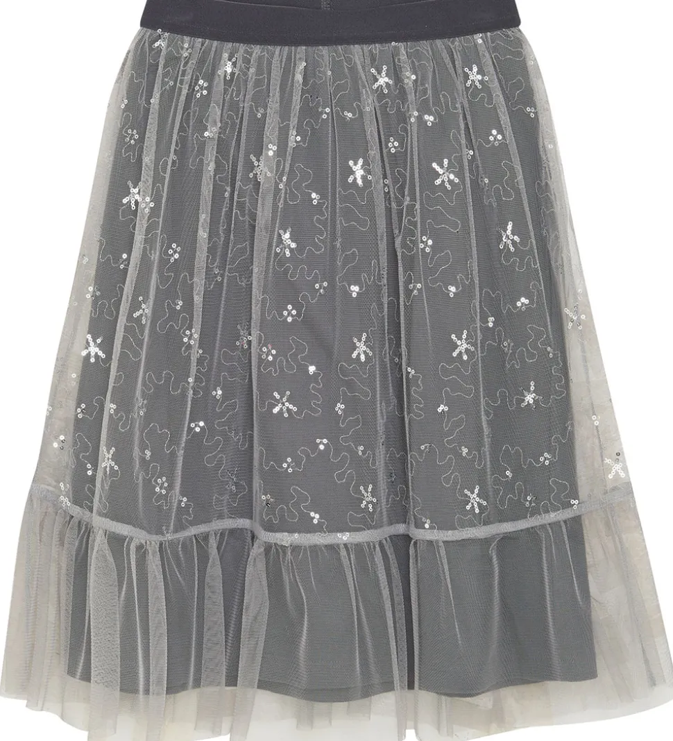Flot Creamie tylnederdel i grå med et fint, broderet mønster og sølvfarvede pailletter.