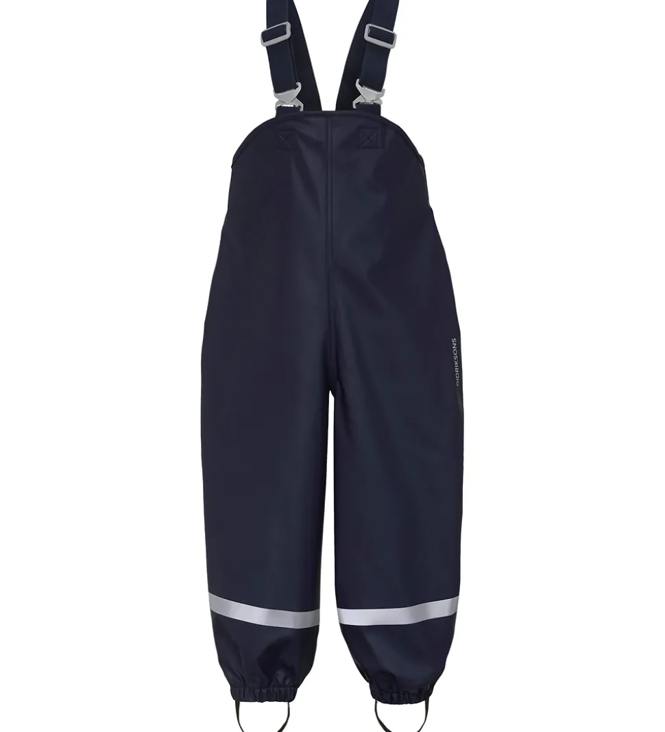 Smarte Didriksons regnbukser i ensartet navyblå Galon® med refleks- og logoprint.