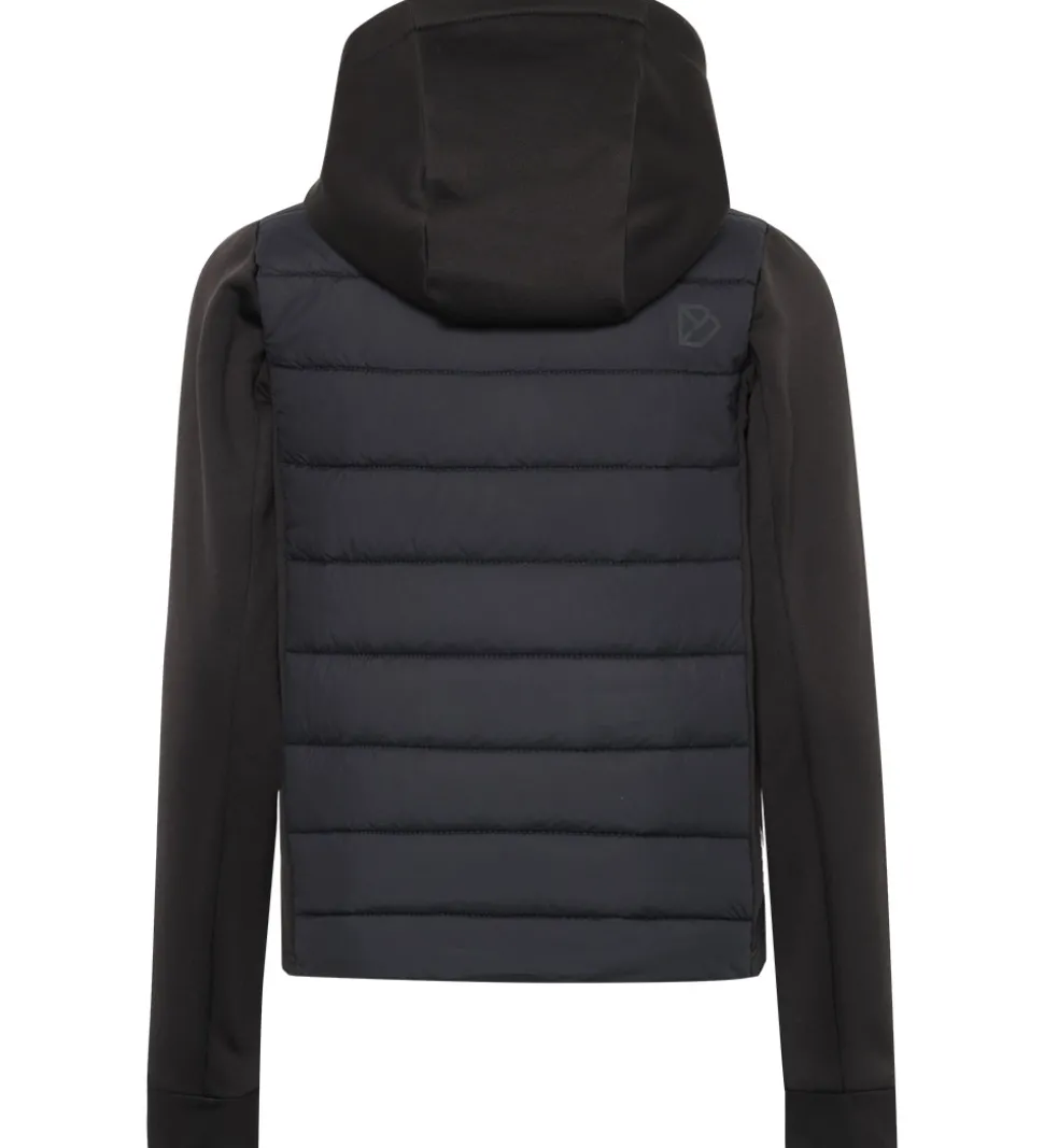Fin Didriksons softshelljakke i sort. Kroppen er i et glatvævet materiale med vandrettte syninger, mens resten er i softshell.