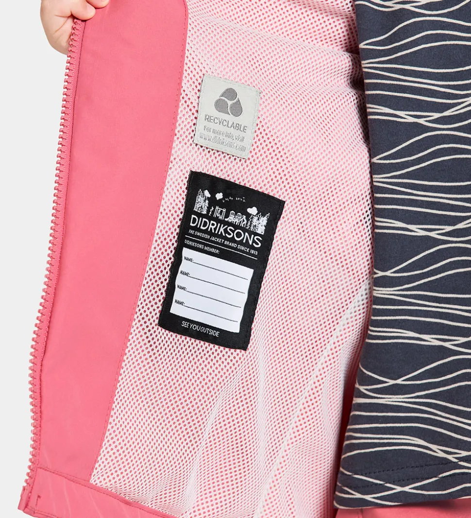 Didriksons sommerjakken har en aftagelig hætte, der er fæstnet med trykknapper langs den høje halskrave. Hættens ansigtsåbning har elastikkanter i siderne og en skygge i toppen. Ærmerne har praktiske elastikkanter i åbningerne.