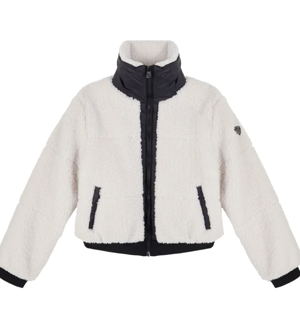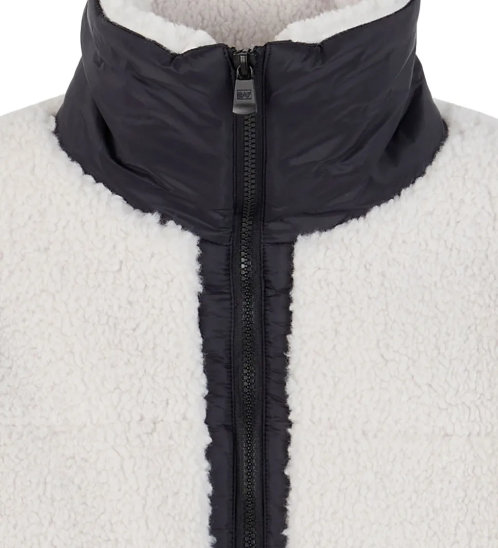 Skøn EA7 fleecejakke i hvidt teddyfleece og med sorte detaljer.