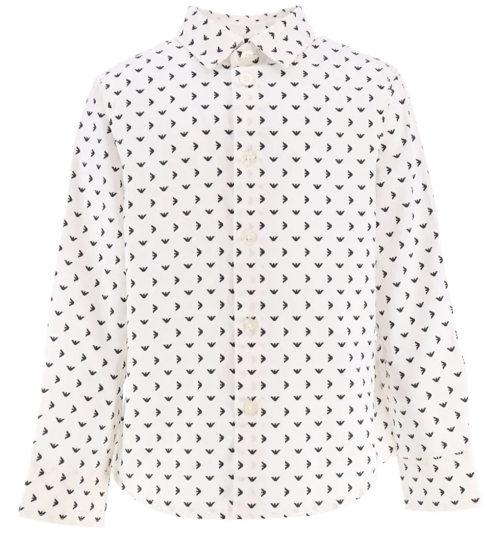 Smart Emporio Armani skjorte i hvid med et allover print af små, sorte logoer.