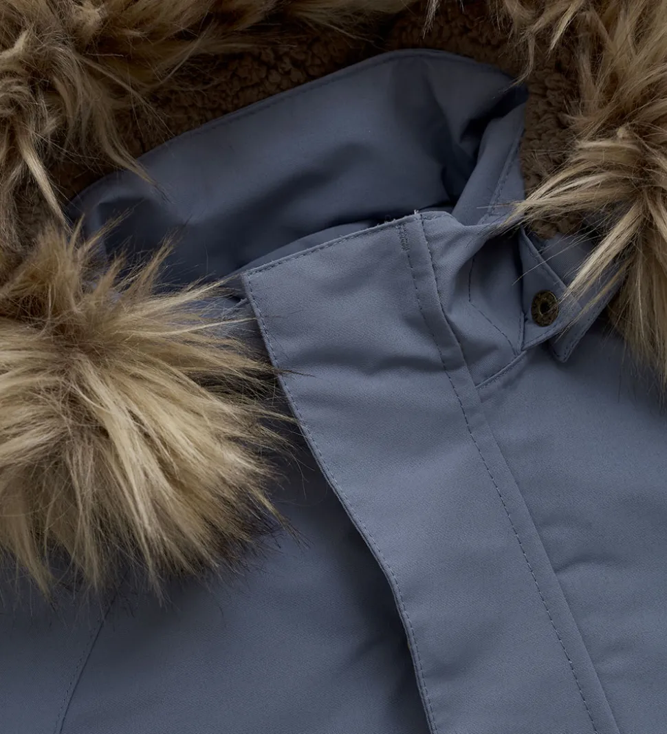 Flyverdragten er vatteret og foret med teddyfleece i hætten og den øverste del af kroppen, mens resten har et glatvævet for.