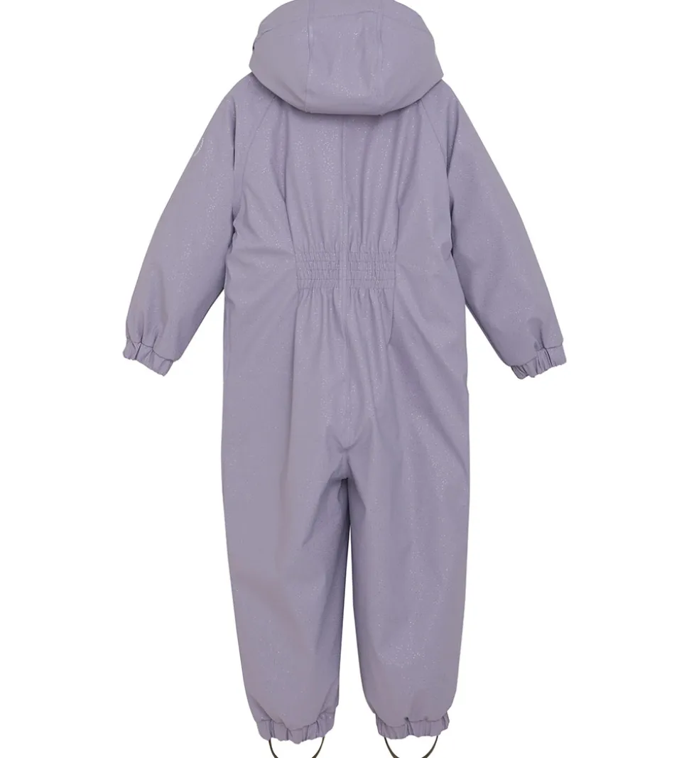 Sej En Fant flyverdragt i en dejlig, blød og vandtæt PU-kvalitet i støvet lilla med glimmer.