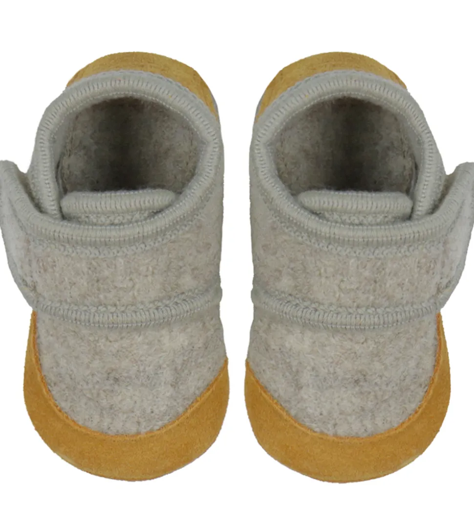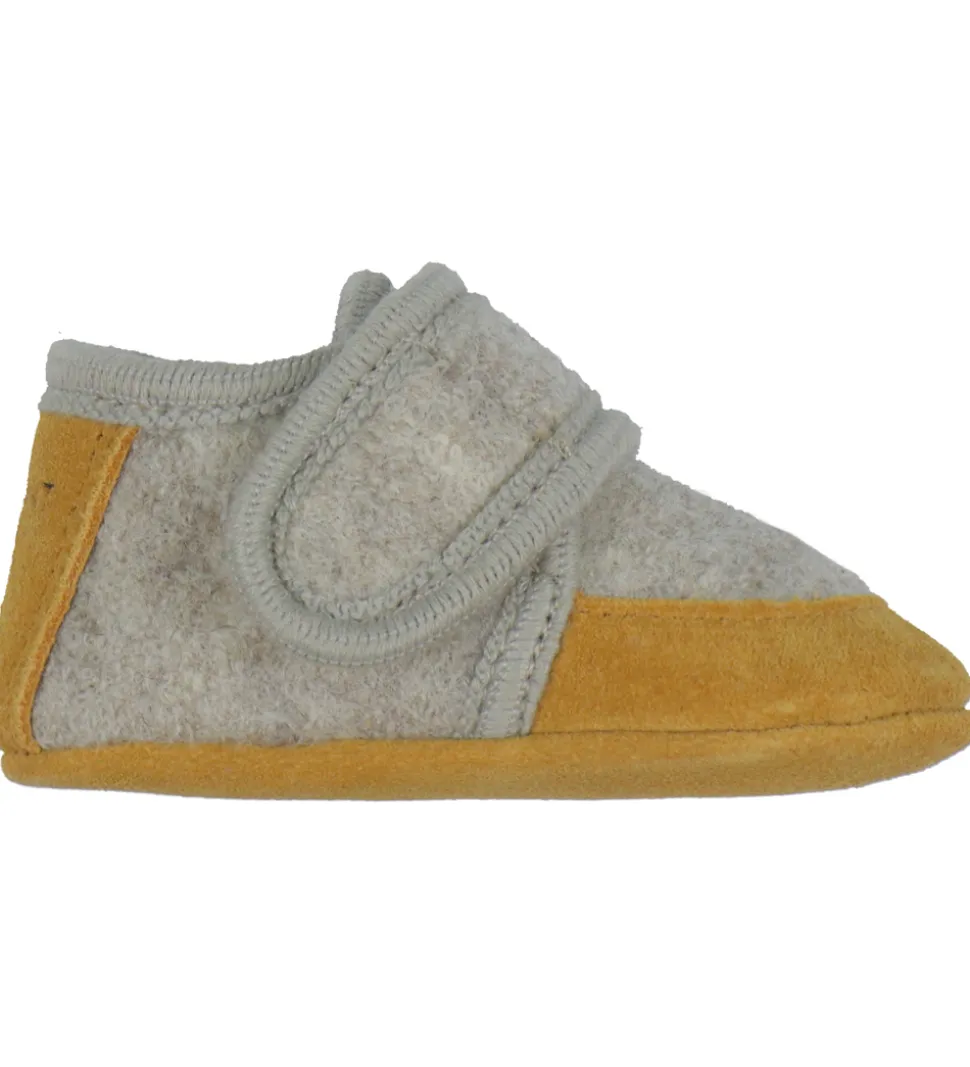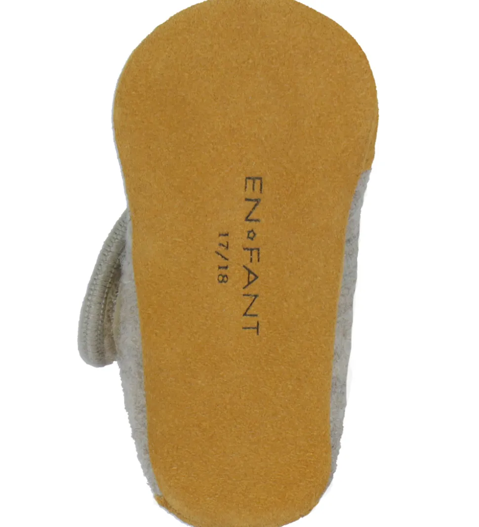 Fine En Fant hjemmesko i beigemeleret uld med lysebrunt ruskind på snuden og hælen.