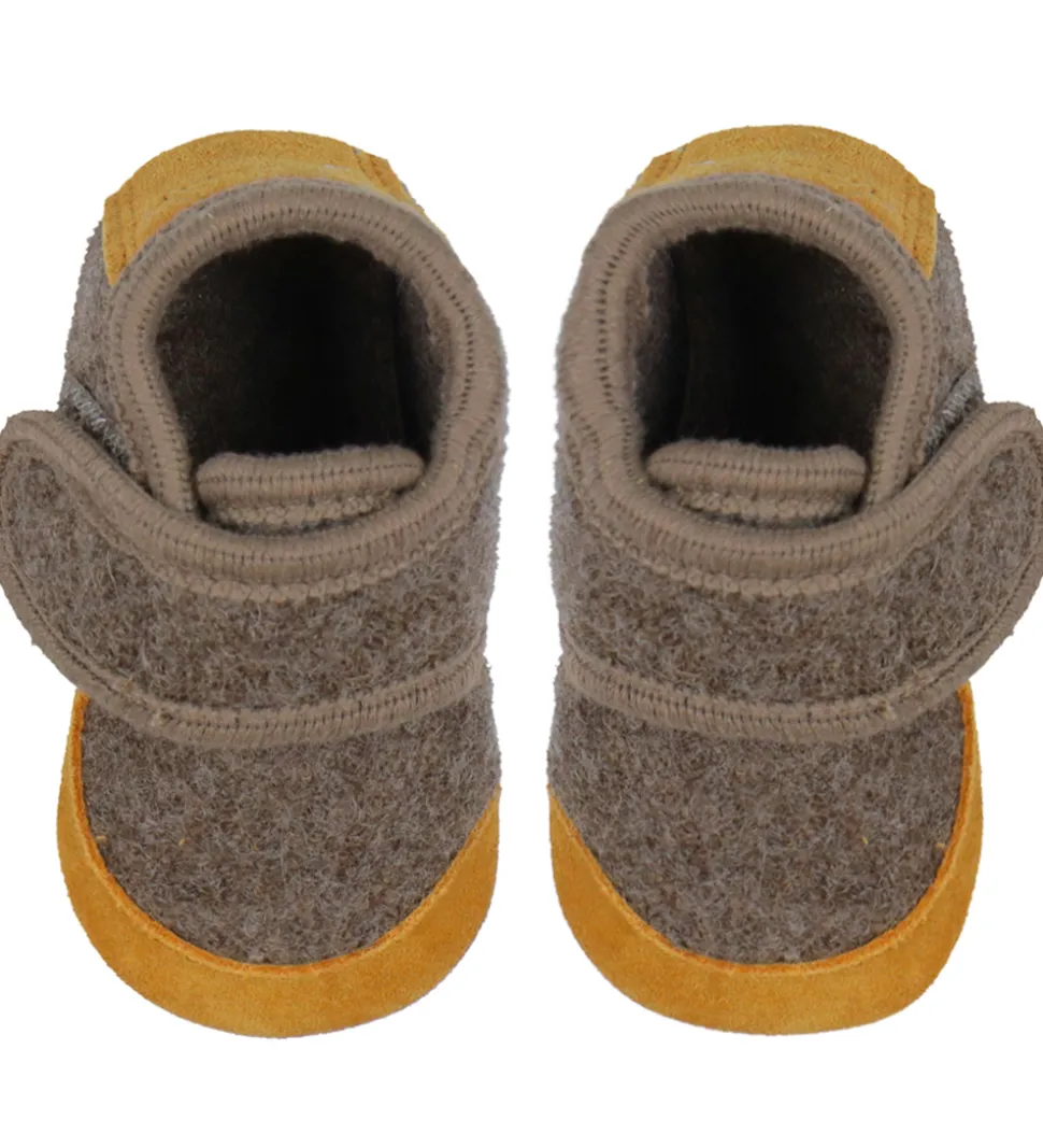 Lækre En Fant hjemmesko i mørkebrunt uld med lysebrunt ruskind på snuden og hælen.