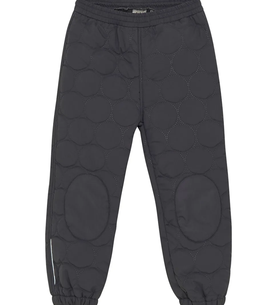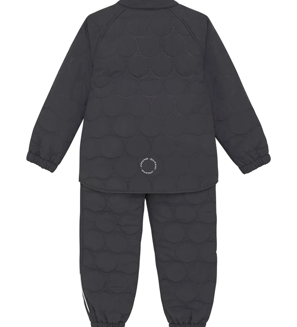 Fint En Fant termotøj i mørk koksgrå med en indpræget, quiltet struktur i runde cirkler. Sættet består af en termojakke og et par termobukser.