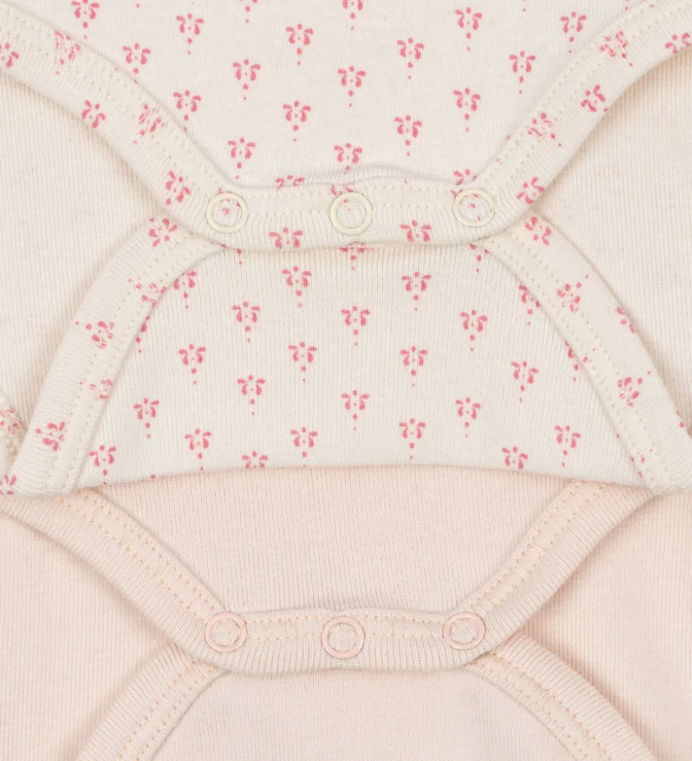 Fine bodyer fra Fanga Fontana med lange ærmer solgt i en 2-pak. Den ene body har et enkelt, ensfarvet design i lyserosa med et diskret katteprint ved brystet. Den anden body fra Fanga Fontana har et charmerende mønster med små, lyserøde motiver på en cremefarvet baggrund.