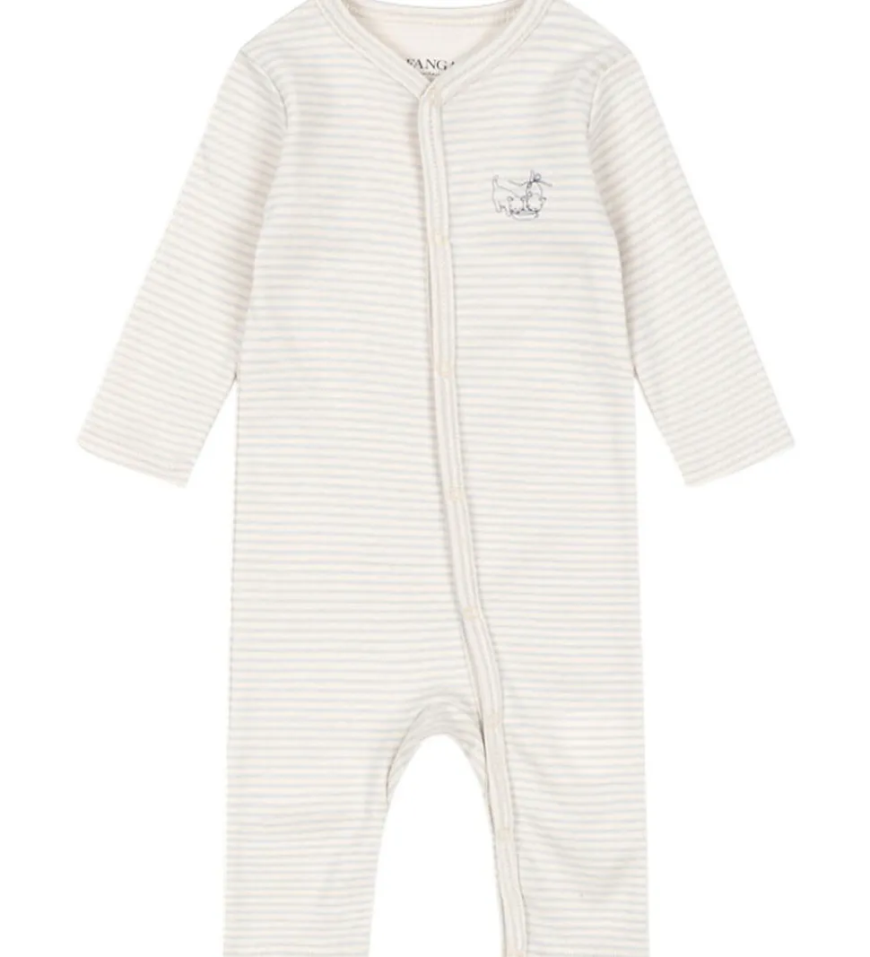 Behagelig Fanga Fontana natdragt med lange ærmer og et klassisk stribemønster i lyseblå og hvid.