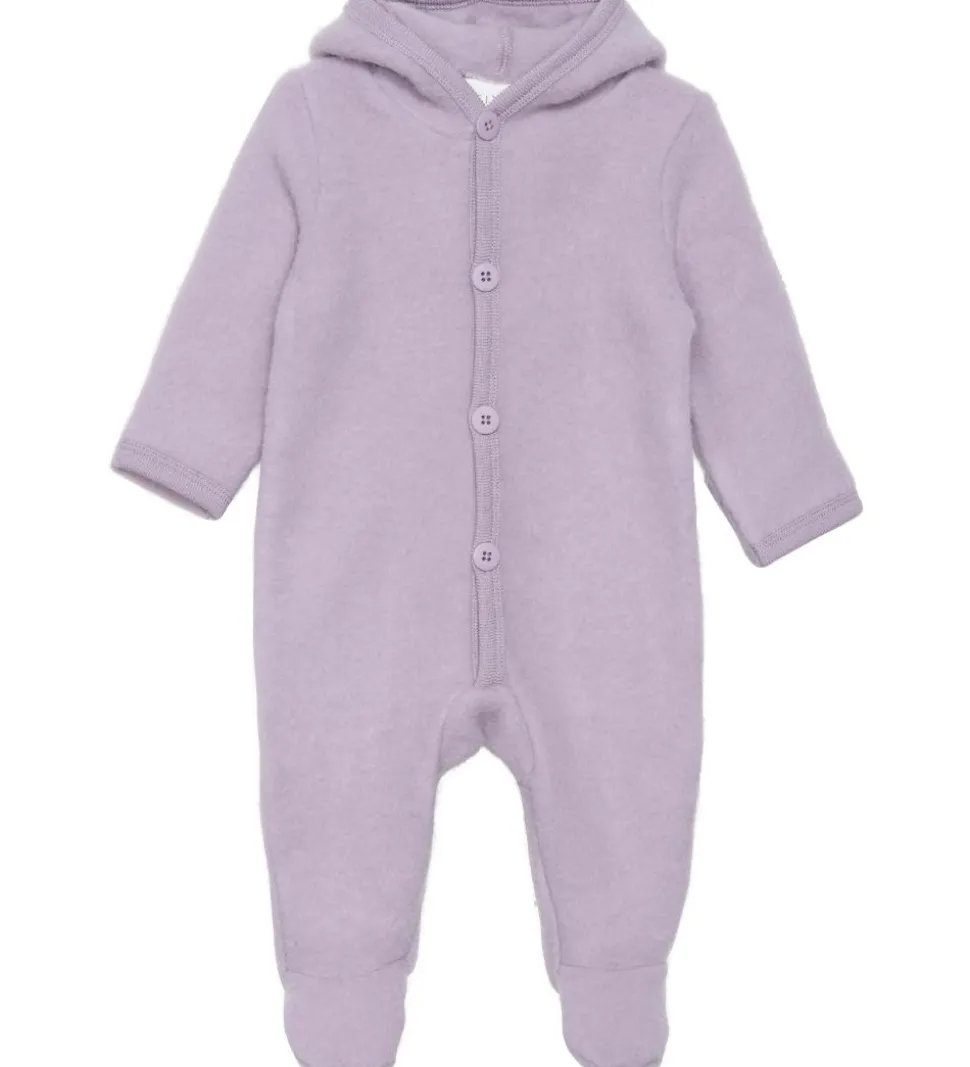 Lækker Fixoni køredragt i lilla, filtet uld med to søde ører på hætten.
