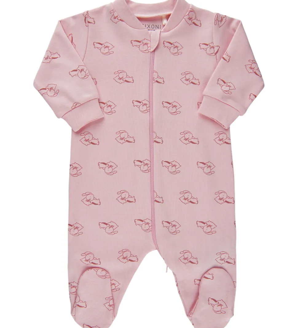 Charmerende Fixoni natdragt i lyserød, dekoreret med et sødt print af små dyr.