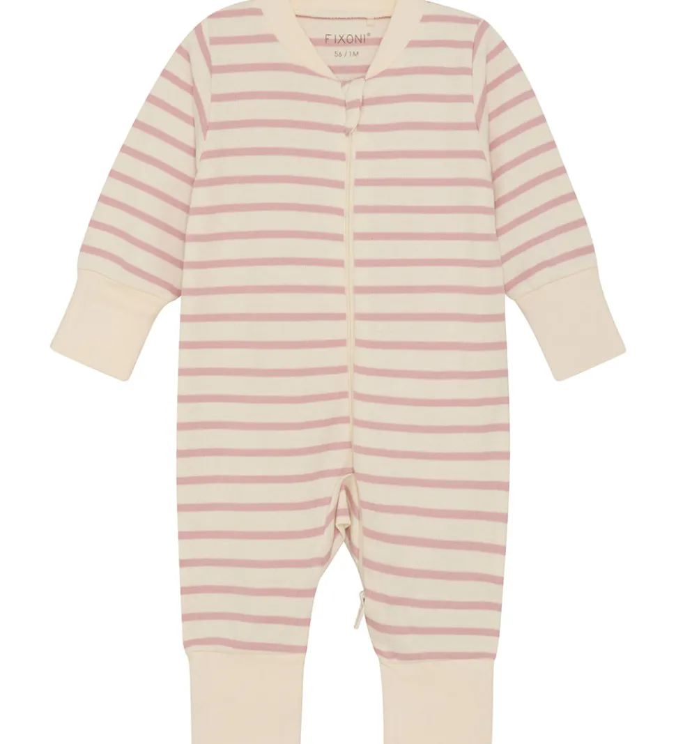 Fixoni natdragten har lange ærmer og ben med ekstra brede kanter og praktiske ombuk. Natdragten åbnes med en lynlås ned ad fronten og ned ad det venstre ben. Lynlåsen har en hagebeskytter og to skydere, så den både kan åbnes oppefra og nedefra.