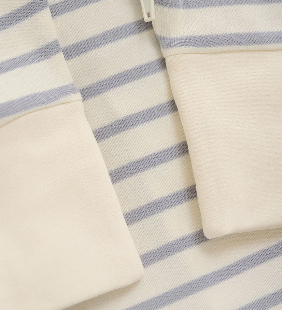 Flot Fixoni natdragt i hvid med smalle, vandrette striber i lyseblå.