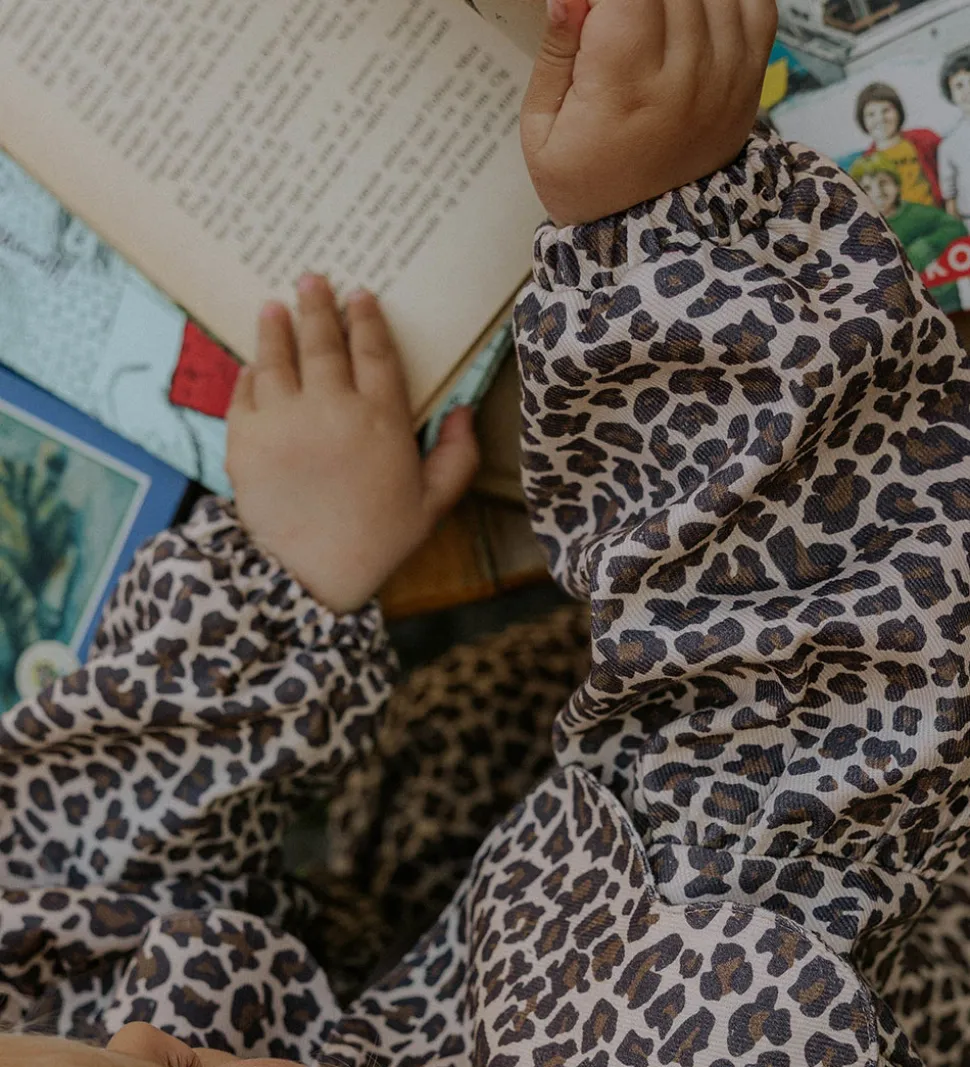 Stilfuld Fliink denimjakke med et spændende leopardprint i nuancer af brun og beige.
