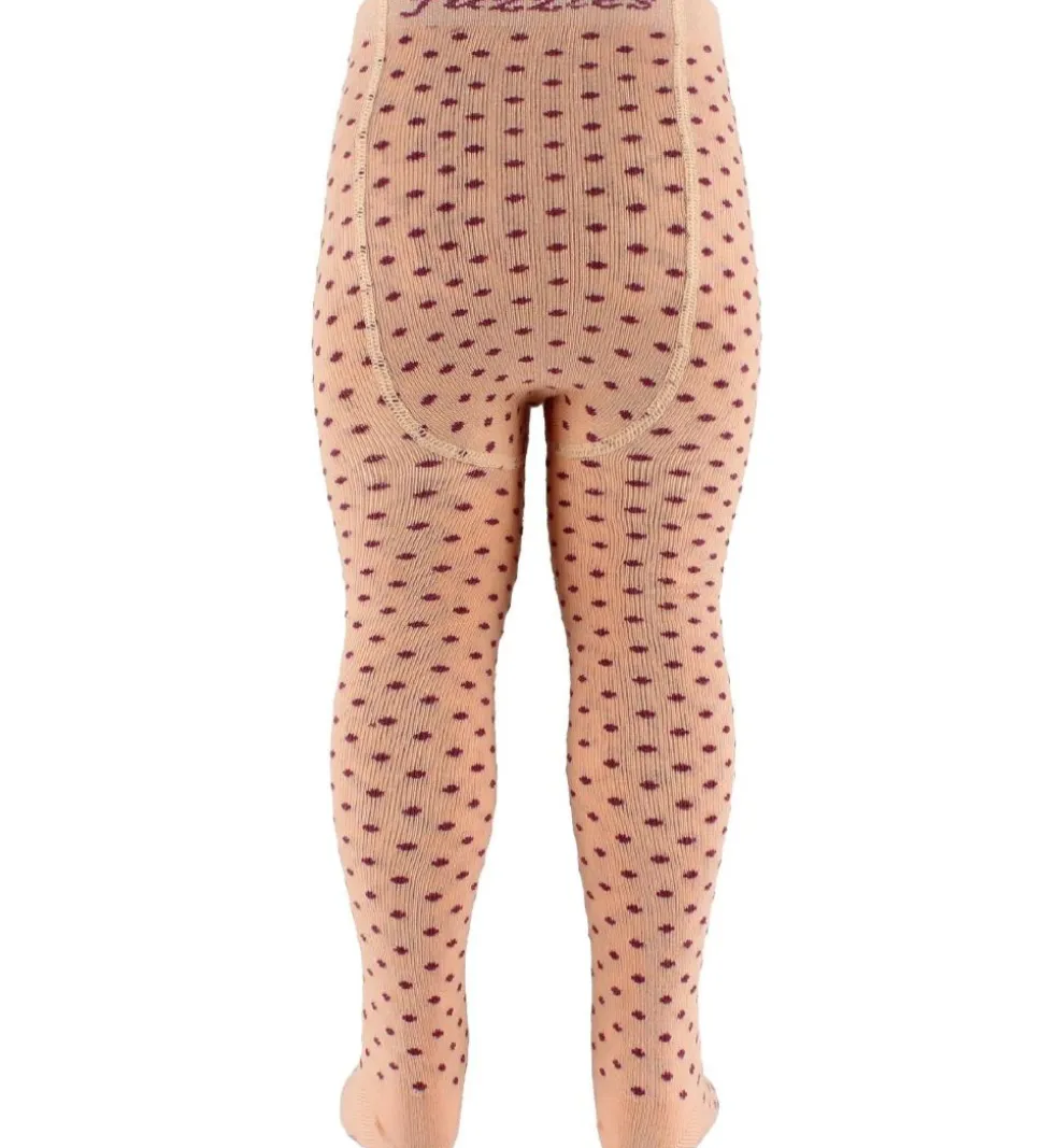 Dejlige Fuzzies strømpebukser i lys fersken m. bordeaux prikker over det hele.