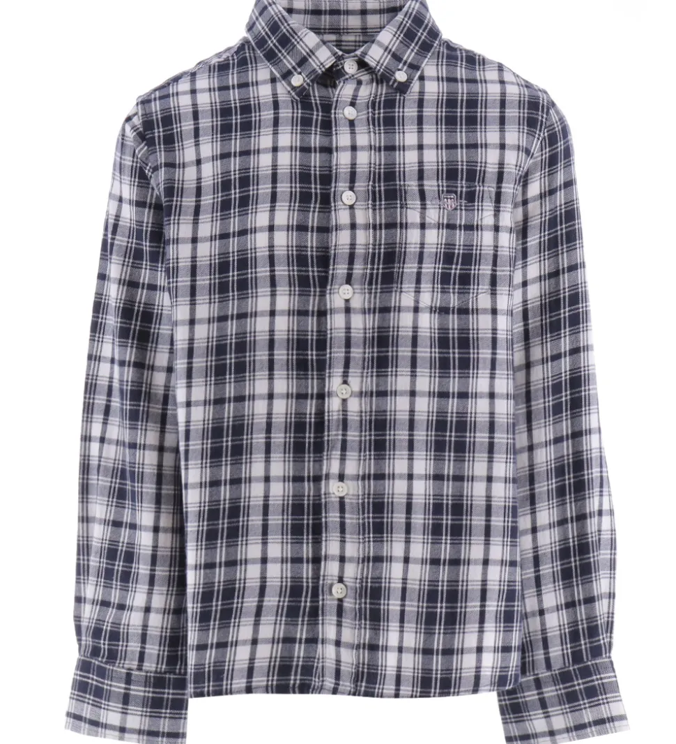 Lækker GANT skjorte med et ternet mønster i navy og hvid flonel