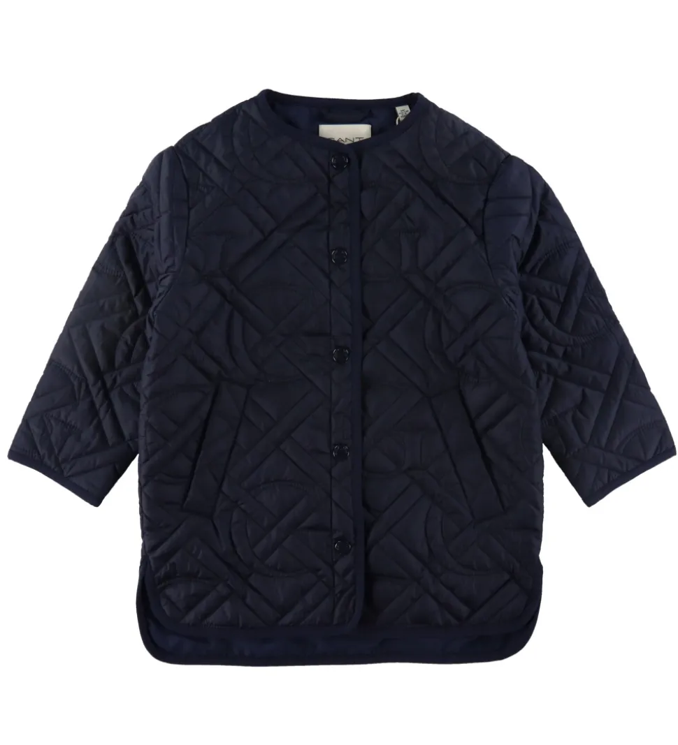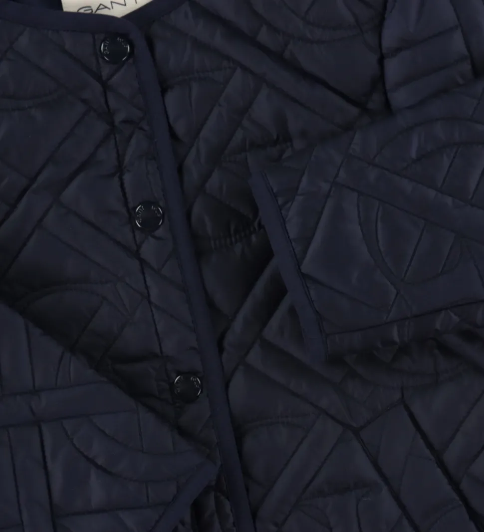 Lækker GANT termofrakke i navyblå med en quiltet struktur med brandets velkendte “G”.