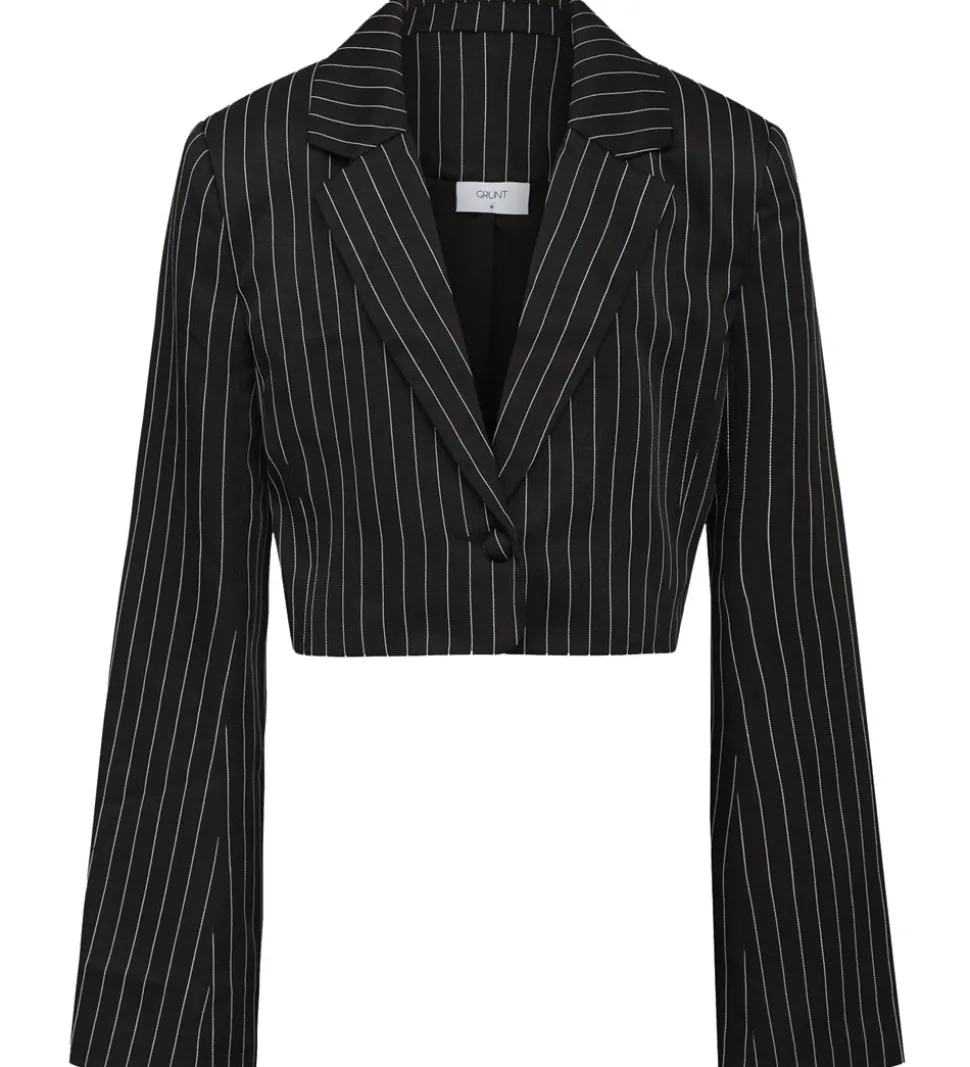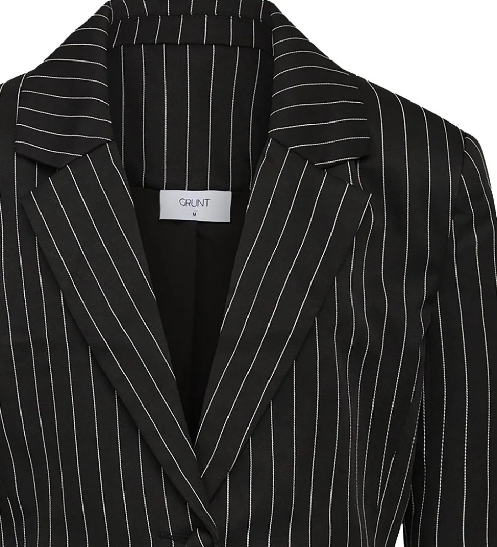 Smart Grunt blazer i sort med lodrette striber i hvid.