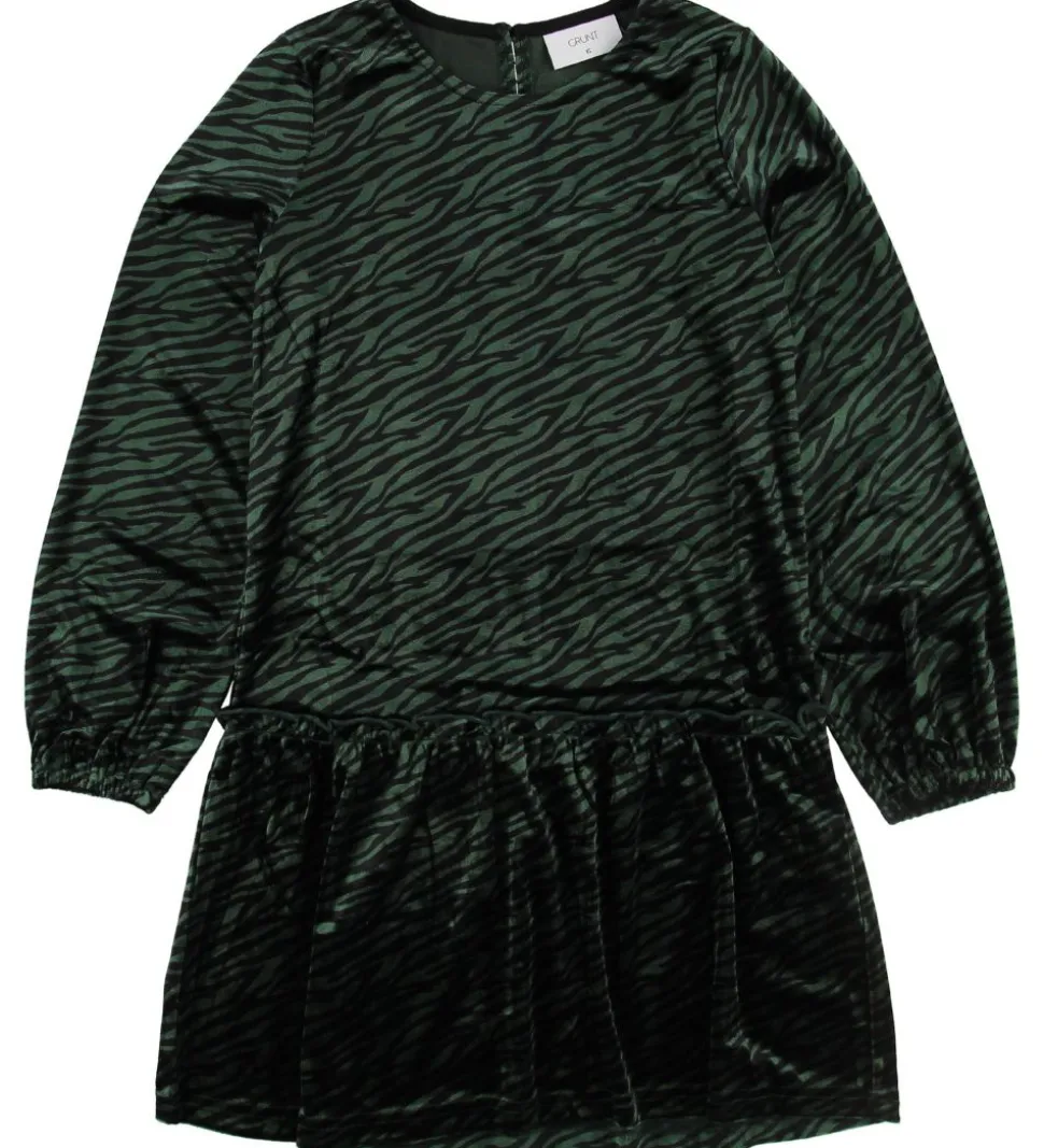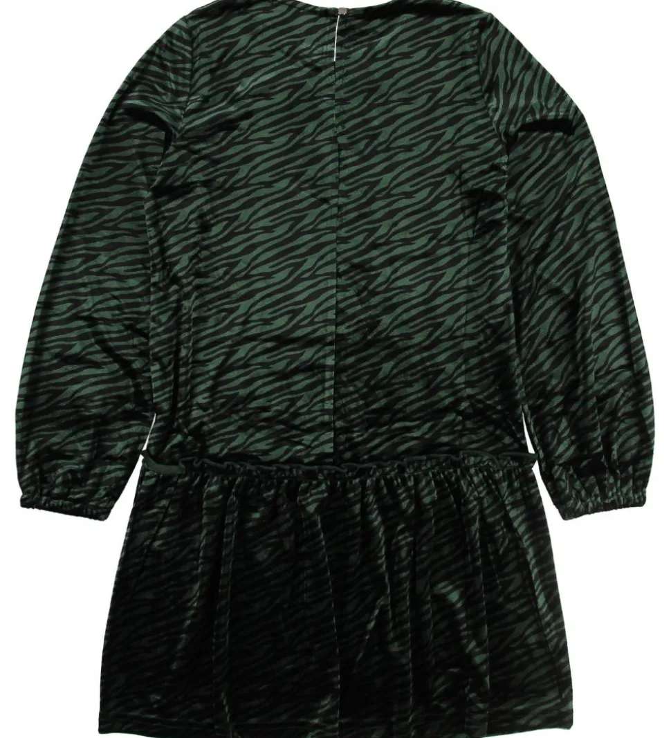 Smart Grunt kjole i mørkegrøn velour med allover sorte Zebra striber.
