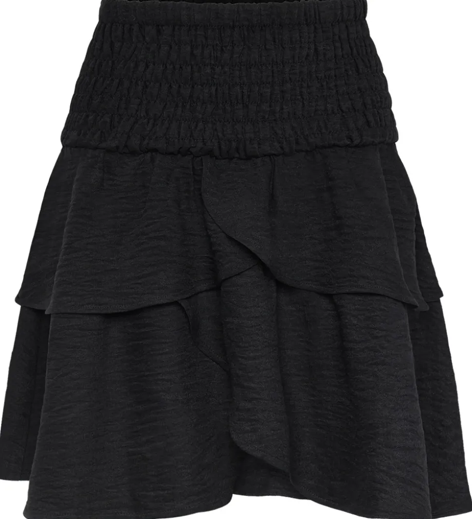 Flot Grunt nederdel i sort med flotte lag og en bred elastisk talje. Nederdelen er fremstillet i en blød kvalitet, som er både behagelig og stilfuld. Ideel til forskellige anledninger.