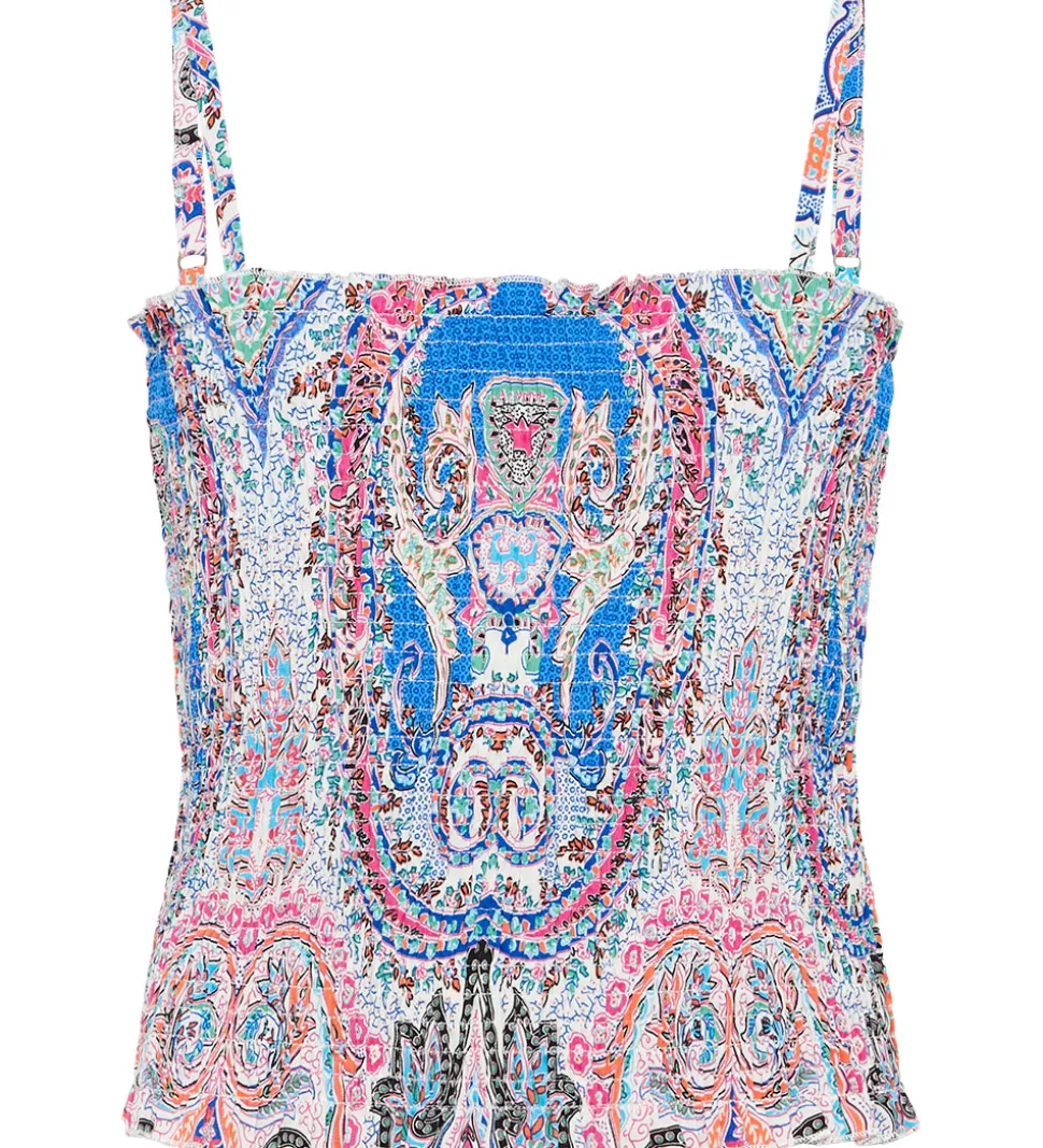 Grunt toppen er uden ærmer og den har smalle, justerbare skulderstropper. Toppen er i en flot smock struktur, og den er produceret i en blød og strækbar kvalitet.