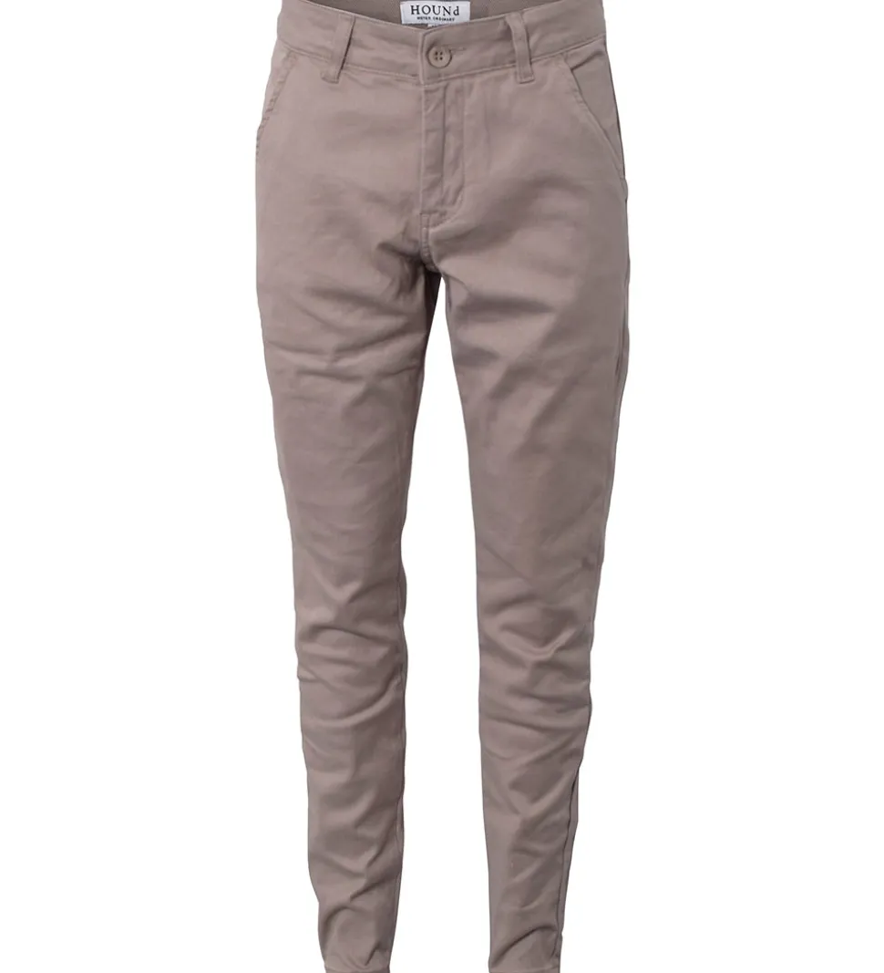 Hound bukserne er en chino-model. Der er en justerbar elastik italjen, og de åbnes med en knap og en lynlås. Fortil er der skrå lommer, og bagpå er der snydelommer.