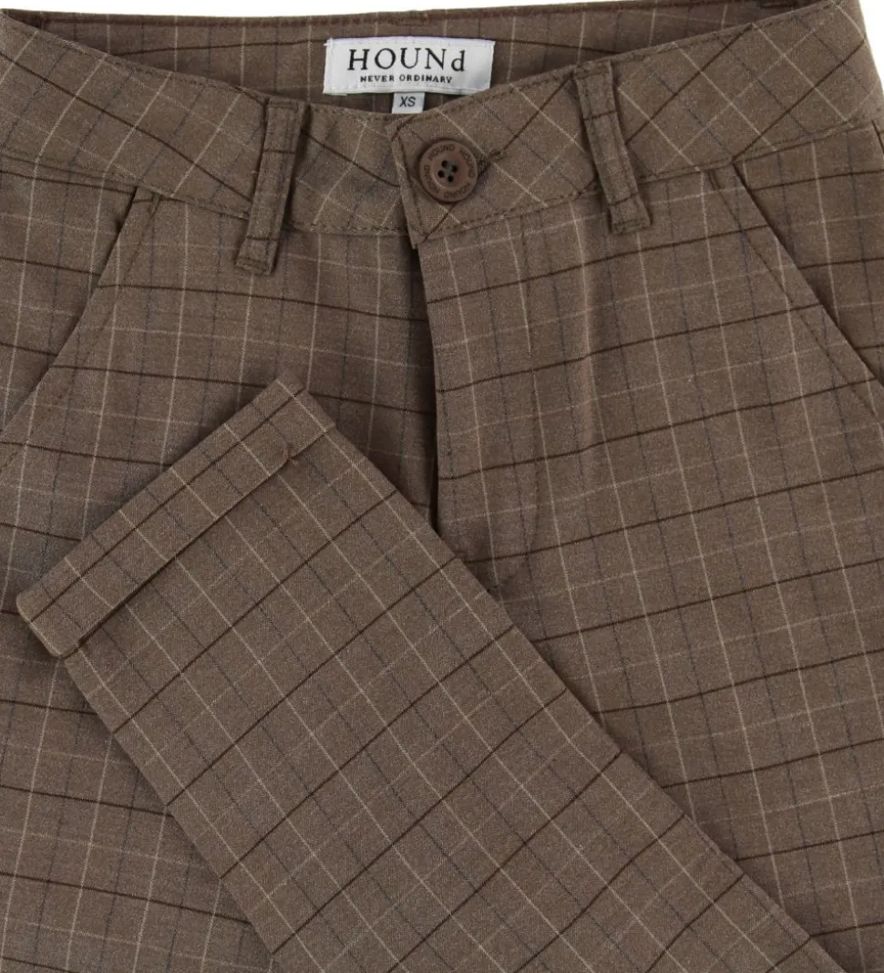 Smarte Hound chinos i brun med tern i grå, sand og sort.