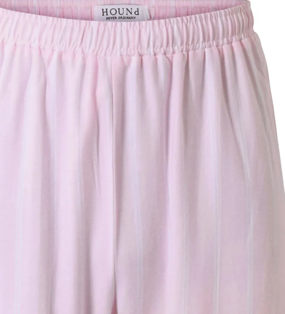 Fine Hound natbukser i rosa med lodrette, hvide striber. Natbukserne er lavet i en fastvævet kvalitet.