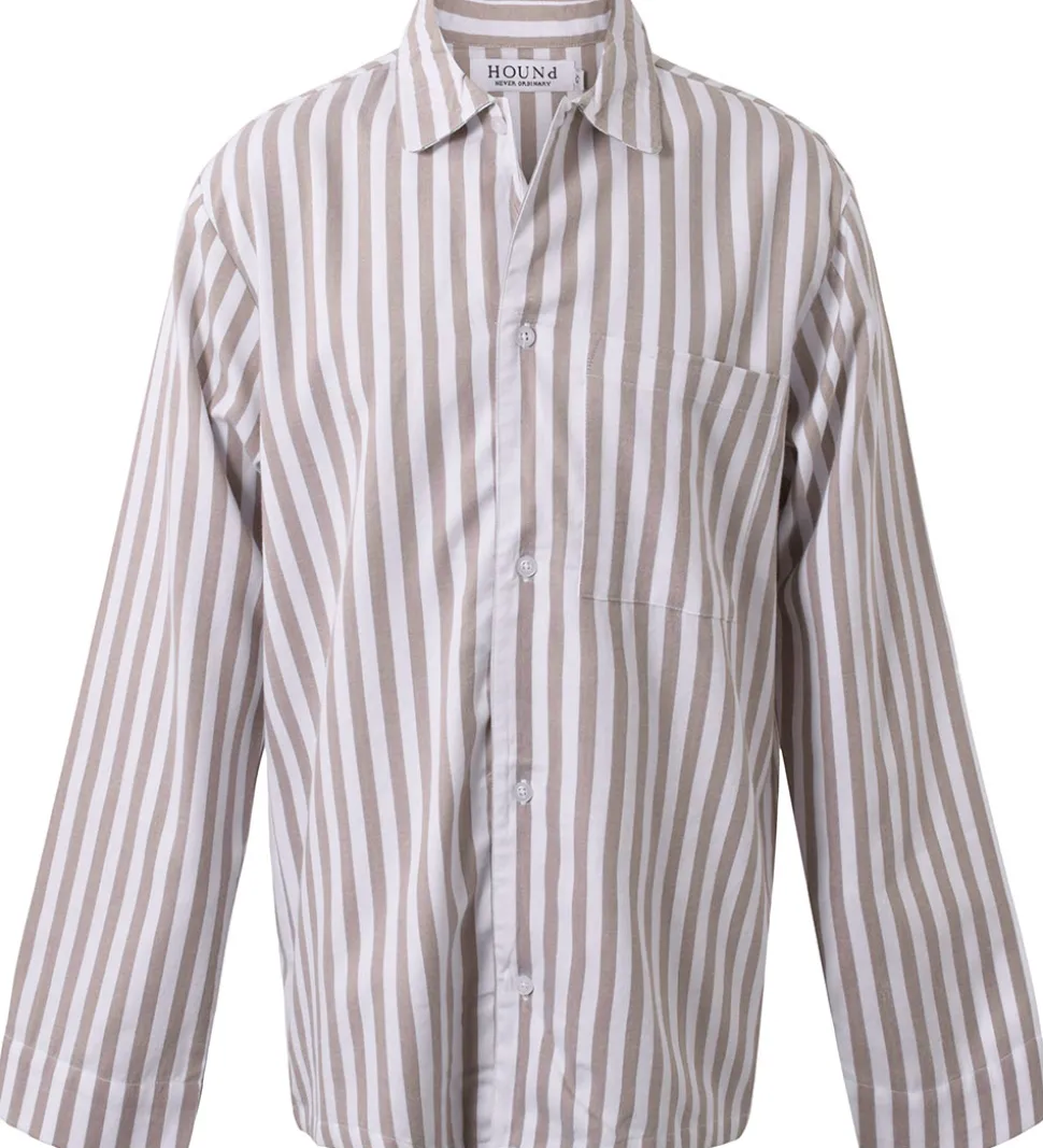 Lækker Hound natskjorte med lodrette striber i hvid og grå. Natskjorten er lavet i en fastvævet kvalitet.