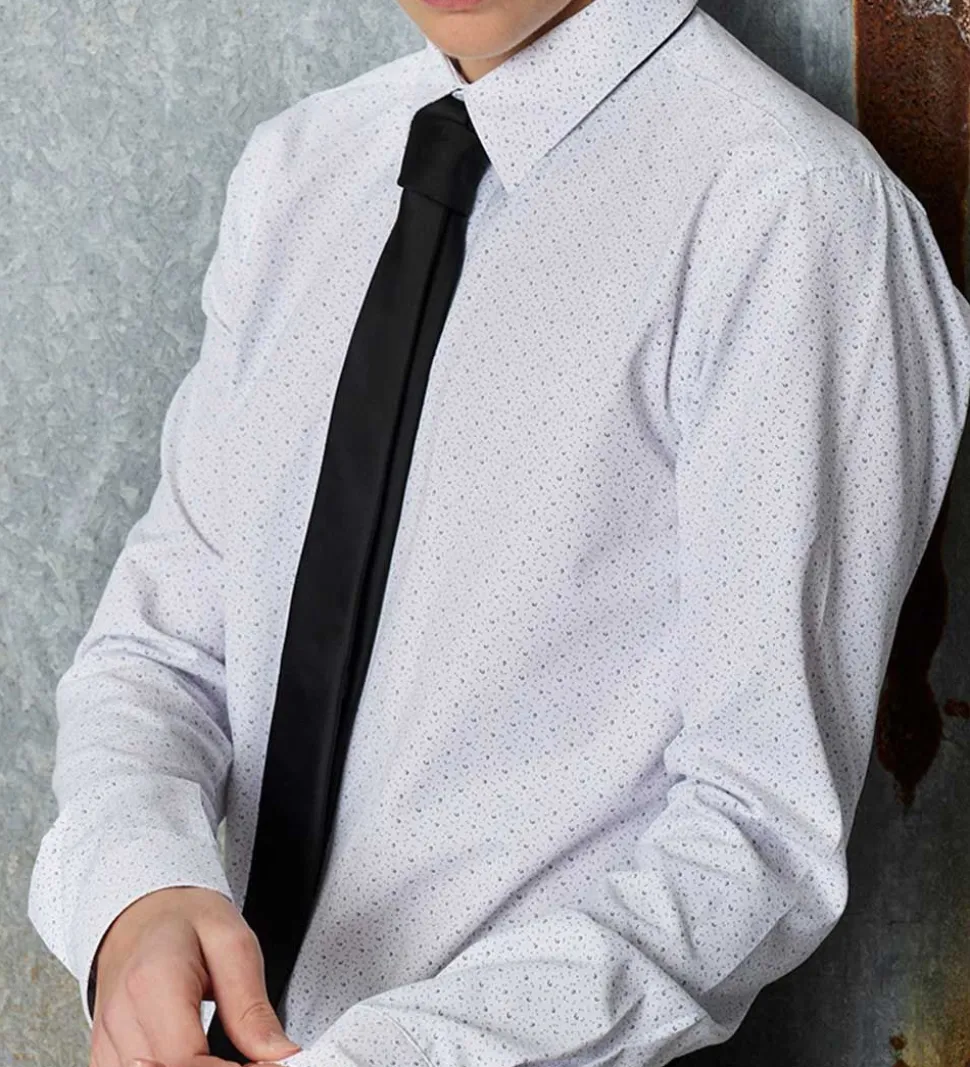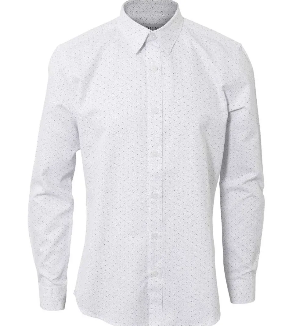 Fin Hound skjorte i hvid med et allover print af små, sorte prikker og åbne cirkler.