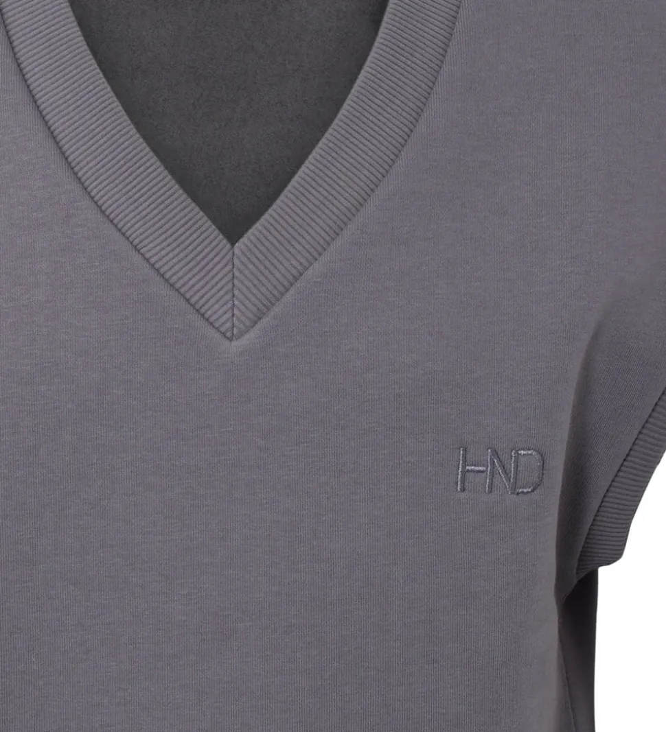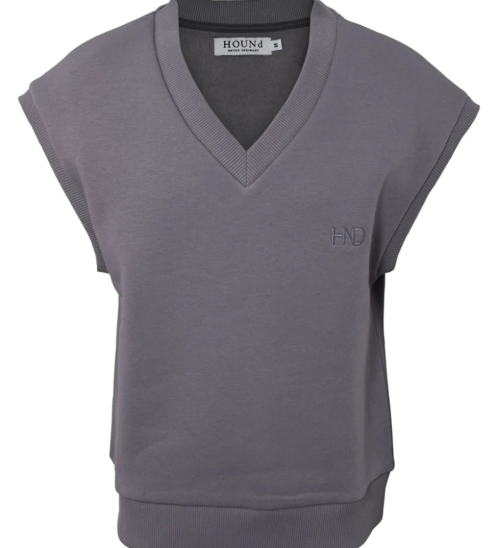 Hound vesten har ribkanter i alle åbninger, og den har en elegant V-udskæring, der giver et stilfuldt udtryk.
