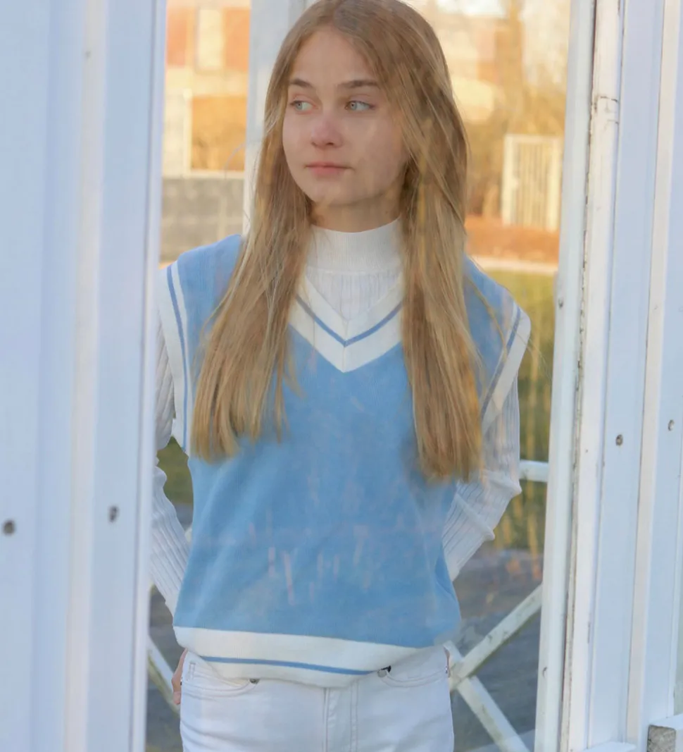 Klassisk Hound vest i en blød lyseblå strik med hvide kanter. Perfekt til at fuldende et moderne outfit.