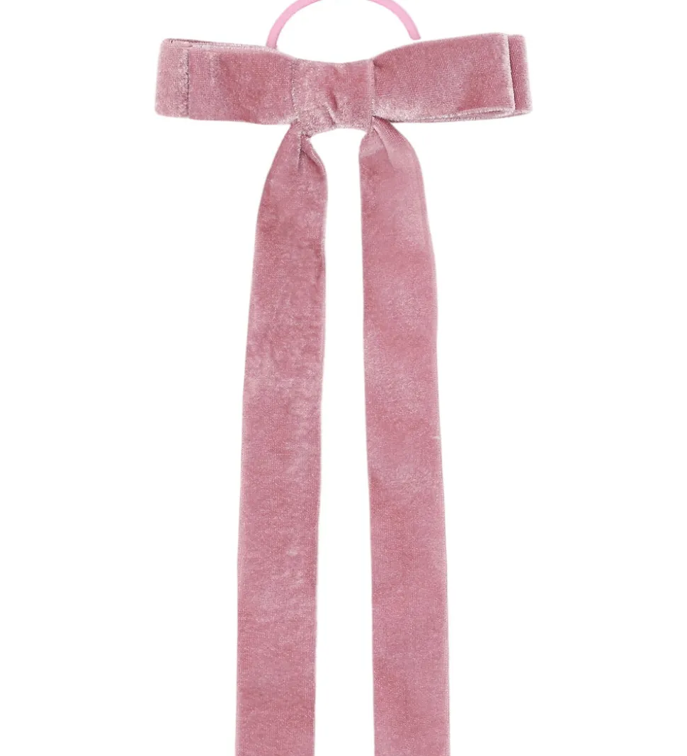 Sød Hust and Claire hårelastik med en stor sløjfe i rosa velour. Hårelastikken tilfører et stilfuldt udtryk. En skøn tilføjelse til ethvert look fra Hust and Claire.