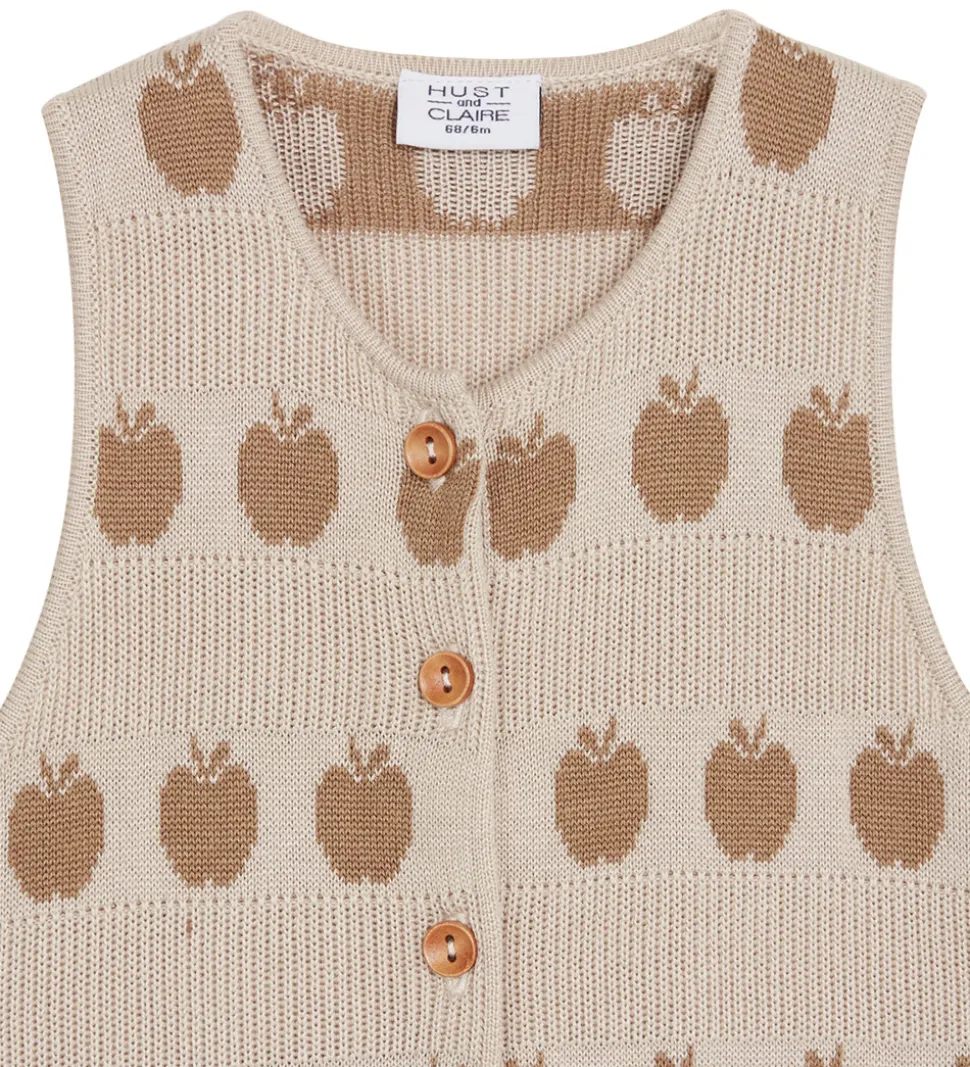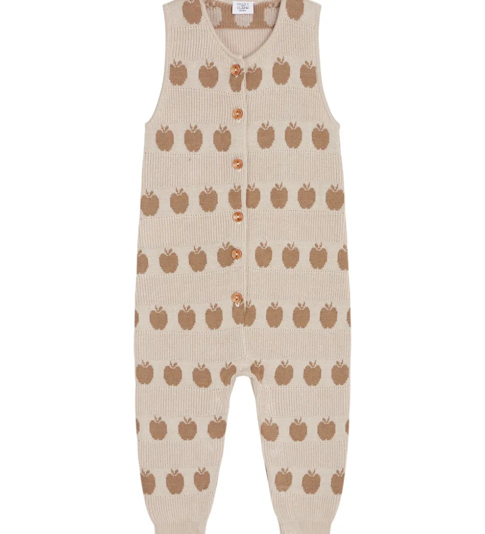 Elegant Hust and Claire heldragt i en lys beige nuance med et charmerende æblemønster i brune toner.